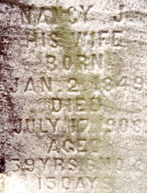 | 11 | Cassady  | Nancy J. Barden | 01/02/1849 | 07/17/1908 | | | w/o Edward, Aged 39y ?M 15d |