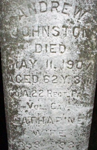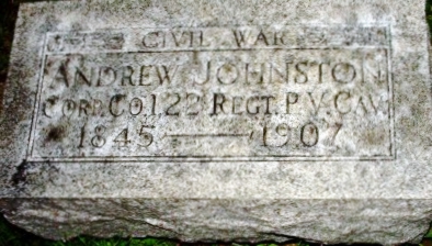 | 14 | Johnston  | Andrew | __/__/1845 | 05/11/1907 | | | Corp, Co I 22 Regt, Pa Vol Cav, Aged 62y 3m |