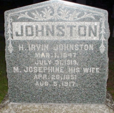 | 23 | Johnston  | M. Josephine | 04/26/1851 | 08/05/1917 | | | w/o H. Irvin |