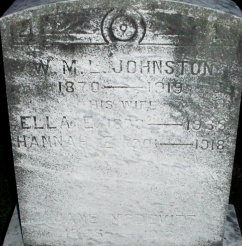 | 19 | Johnston  | Ella E. | __/__/1873 | __/__/1938 | | | w/o William |