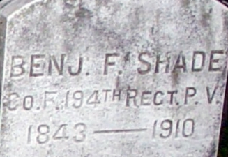 | 41 | Shade  | Benjamin F. | __/__/1843 | __/__/1910 | | | Co F 194th Regt P V |