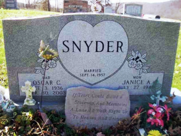 | 59 | Snyder  | Janice A | __/__/1940 | __/__/2011 | | | Mother, married Sep 14 1957 |