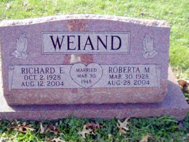 | 73 | Weiand  | Roberta M. | 03/30/1928 | 08/28/2004 | | | Married Mar 30 1948 |