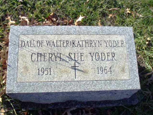 | 81 | Yoder  | Cheryl Sue | __/__/1951 | __/__/1964 | | | d/o Walter & Kathryn |