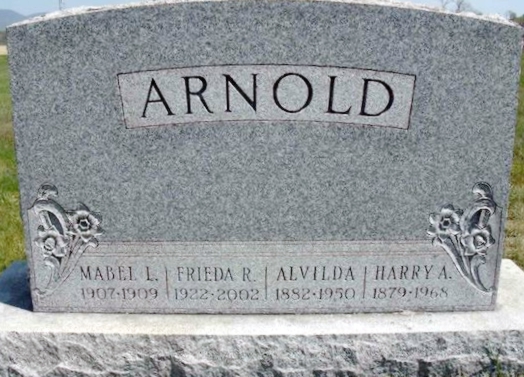 | 1 | Arnold  | Alvilda | __/__/1882 | __/__/1950 | | | w/o Harry A |
