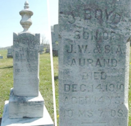 | 34 | Aurand  | J. Boyd | __/__/__ | 12/14/1910 | | | s/o JW and SA, 14y 10m 7d |