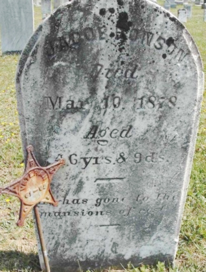 | 72 | Bonson  | Jacob | __/__/__ | 03/10/1878 | | | Civil War marker, 46y 9d |