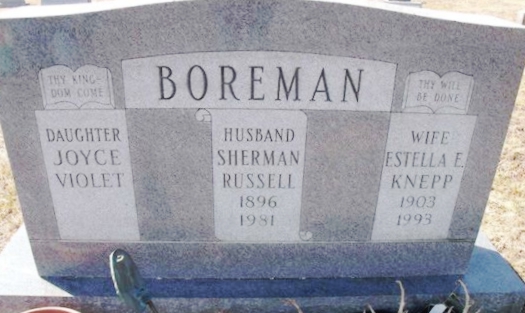 | 76 | Boreman  | Estella E. Knepp | __/__/1903 | __/__/1993 | | | w/o Sherman Russell |