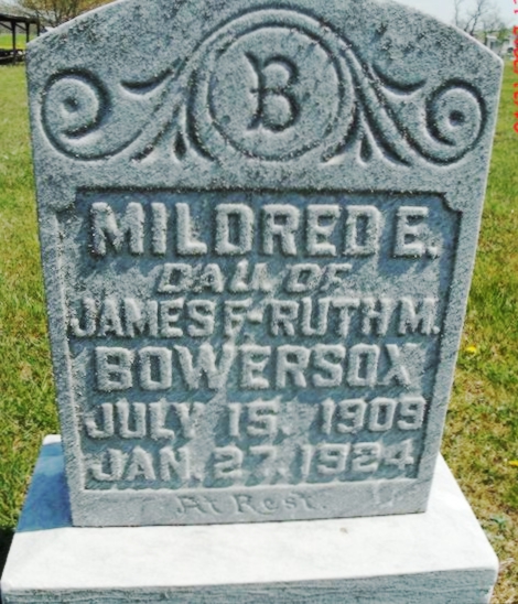 | 95 | Bowersox  | Mildred E. | 07/15/1909 | 01/27/1924 | | | d/o Jas F & Ruth |