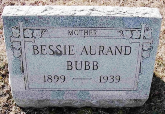 | 119 | Bubb  | Bessie Aurand | __/__/1899 | __/__/1939 | | | Mother, w/o W Herman |