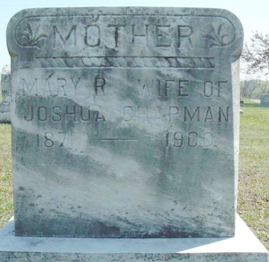 | 121 | Chapman  | Mary Rebecca Wagner | 05/08/1871 | 12/18/1900 | | | w/o Joshua |