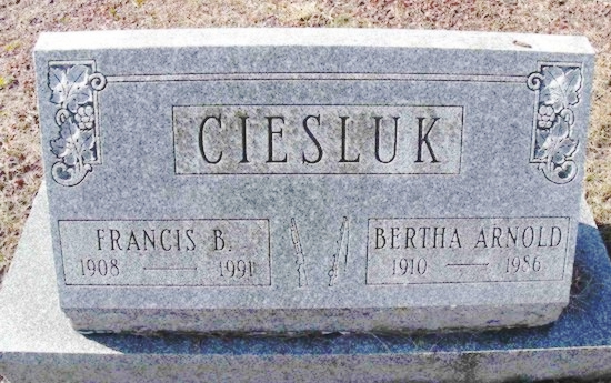 | 122 | Ciesluk  | Bertha Arnold | __/__/1910 | __/__/1986 | | | w/o Francis B |
