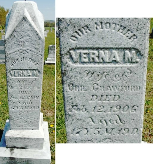 | 126 | Crawford  | Verna M. | __/__/__ | 02/12/1906 | | | w/o Orie, 17y 5m 19d |