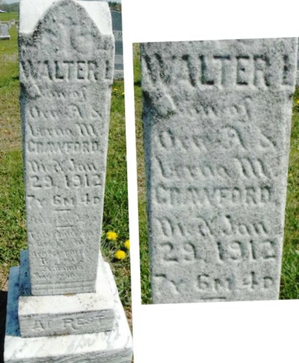 | 127 | Crawford  | Walter | __/__/__ | 01/29/1912 | | | s/o Orie & Verna, 7y 6m 14d |