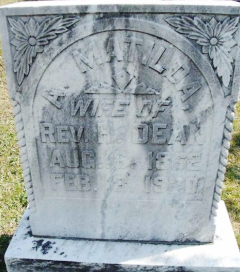 | 135 | Dean  | A. Matilda | 08/16/1862 | 02/18/1920 | | | w/o Rev H Dean |
