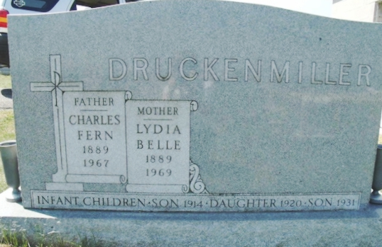 | 148 | Druckenmiller  | Lydia Belle | __/__/1889 | __/__/1969 | | | w/o Chas Fern |