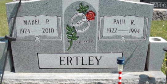| 169 | Ertley  | Mabel P. | __/__/1924 | __/__/2010 | | | w/o Paul R, married 22 Mar 1954 |