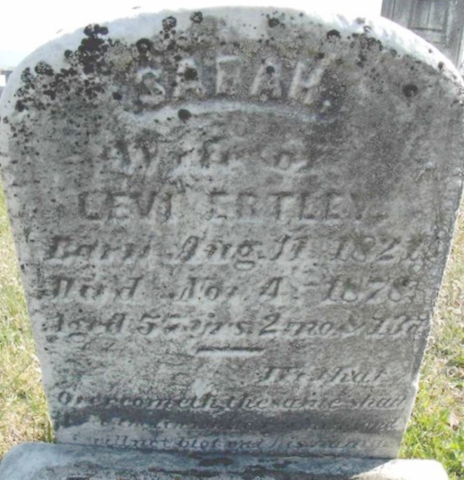 | 173 | Ertley  | Sarah | 08/11/1821 | 11/04/1878 | | | w/o Levi |