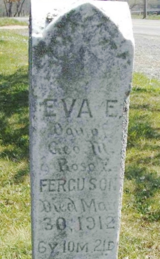 | 177 | Ferguson  | Eva E. | __/__/__ | 05/30/1912 | | | d/o Geo M & Rosa E, 6y 10m 21d |