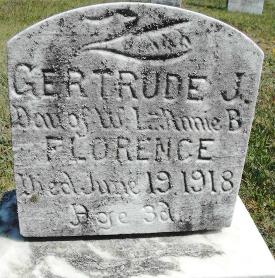 | 190 | Florence  | Gertrude J. | __/__/__ | 06/19/1918 | | | 3d d/o Wm L & Annie |