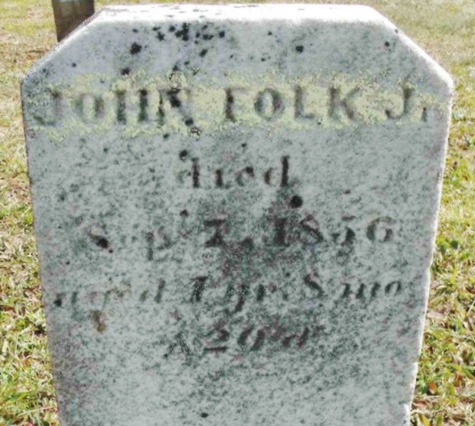 | 195 | Folk  | John Jr | __/__/__ | 09/07/1856 | | | 1y 8m 20d |