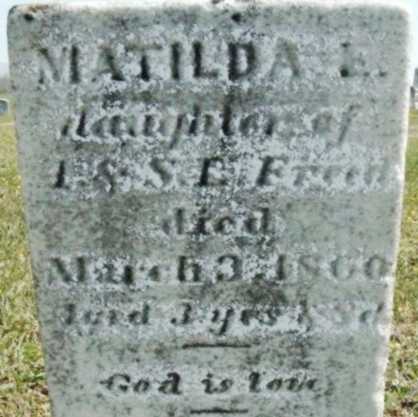 | 199 | Freed  | Matilda E. | 02/24/1857 | 03/03/1860 | | | d/o I and S L |