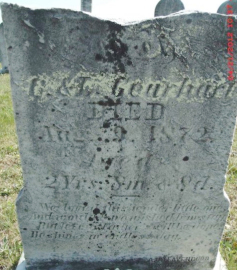 | 200 | Gearhart  | William J. | __/__/__ | 08/09/1872 | | | s/o C & L, 2y 8m 8d |