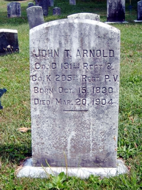| 1 | Arnold  | John T. | 10/15/1830 | 03/20/1904 | | | Co D 131th Regt & Co K 205th Regt. P. V. |