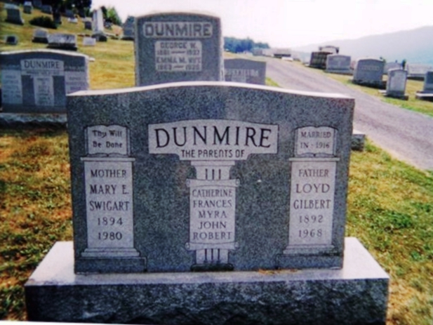 | 3 | Dunmire  | Loyd Gilbert | __/__/1892 | __/__/1968 | | | Father, parents of Catherine, Frances, Myra, John and Robert |