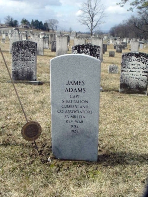 | 1 | Adams  | James | __/__/1734 | __/__/1824 | | | Capt., 5 Battalion, Cumberland Co Associators, PA Militia, Rev War |