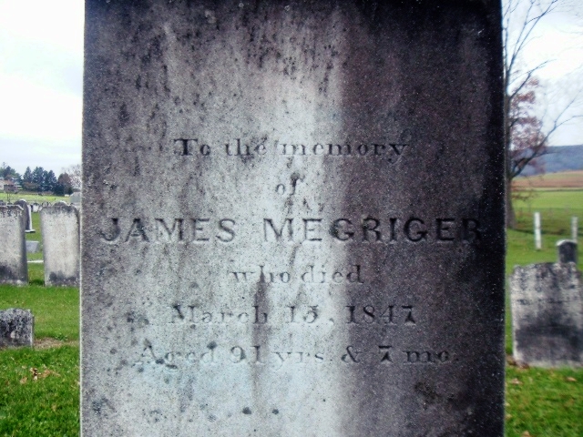 | 4 | Megriger  | James | __/__/__ | 03/15/1847 | | | Rev War marker, aged 91 years and 7 months |