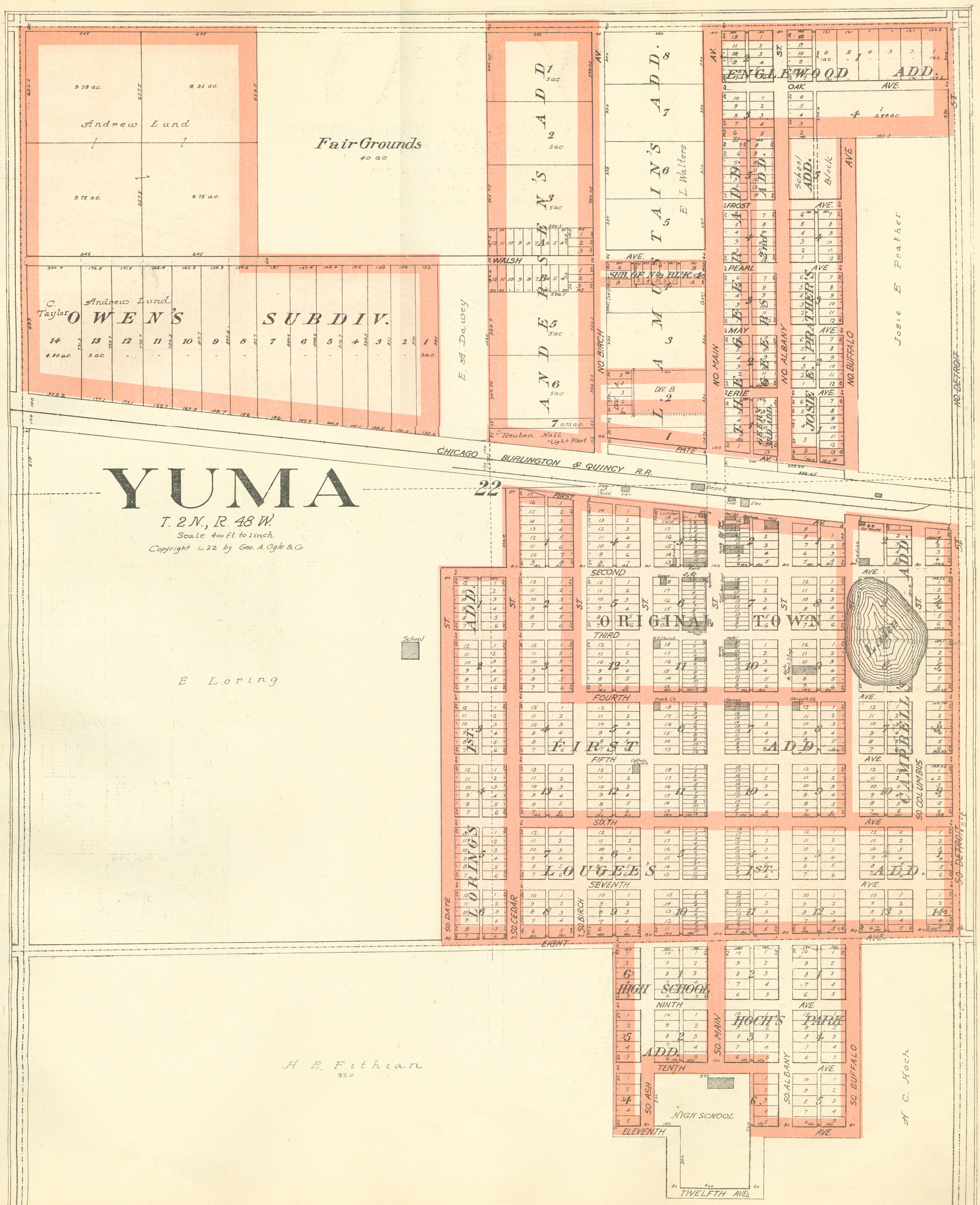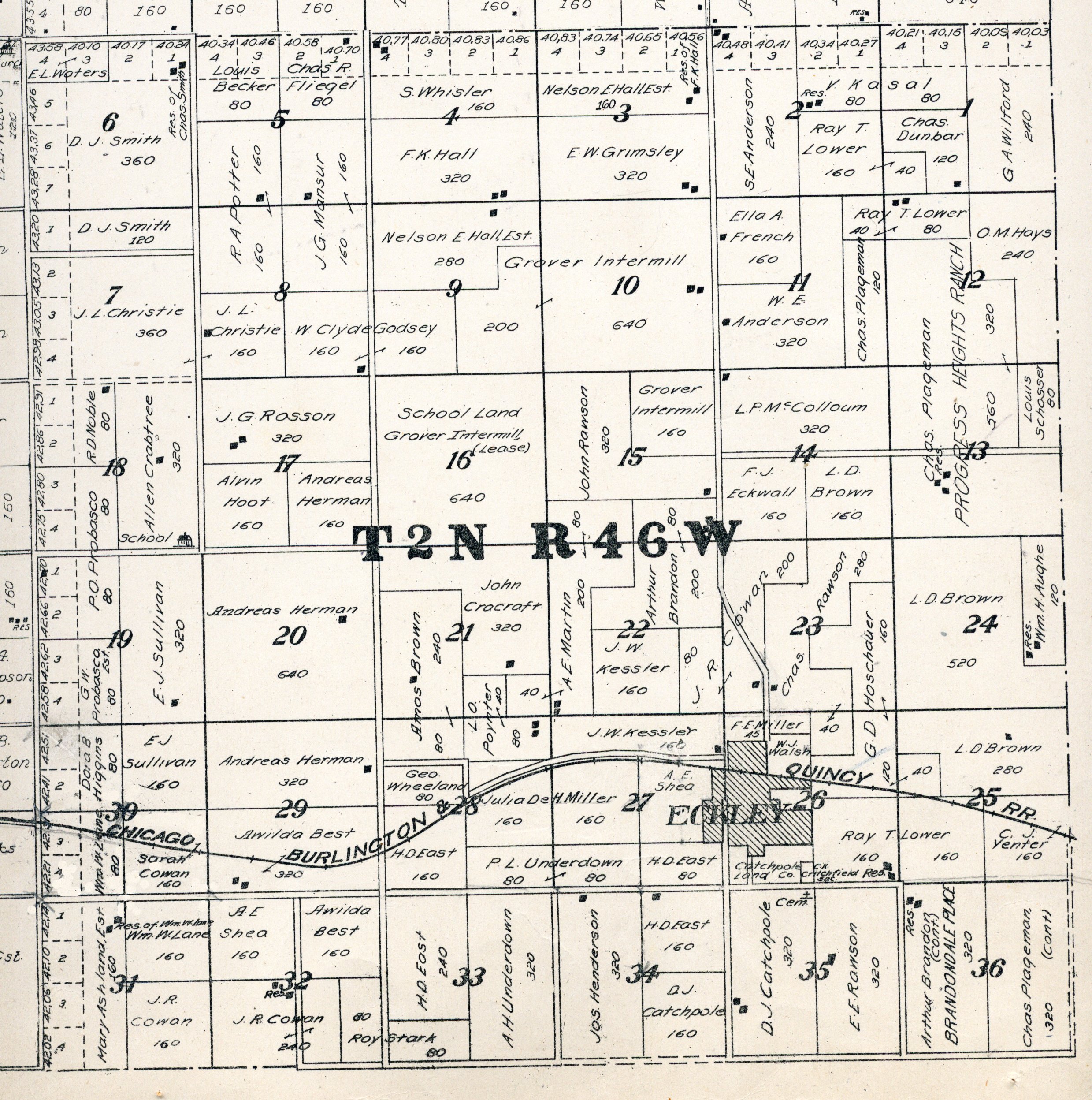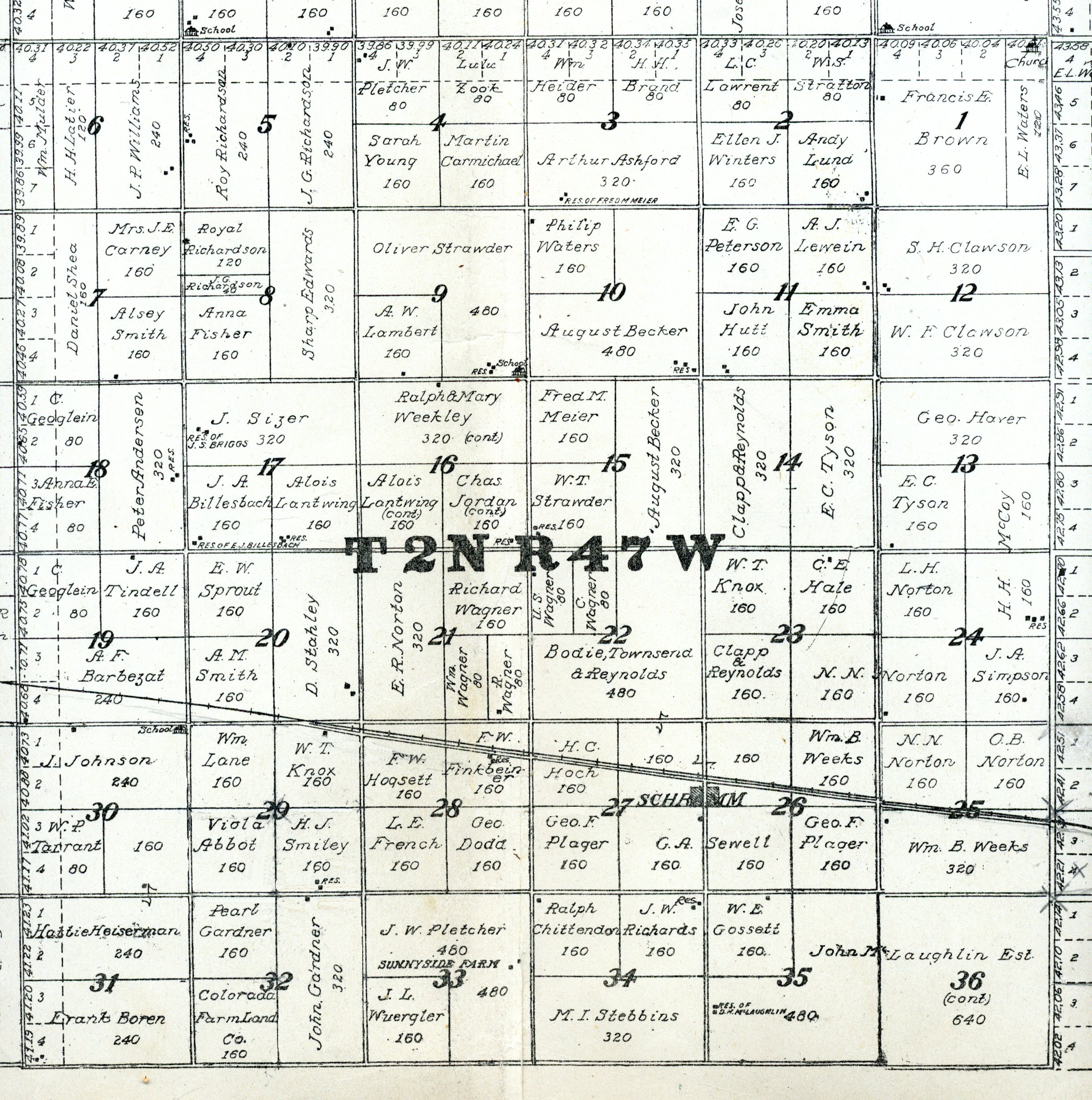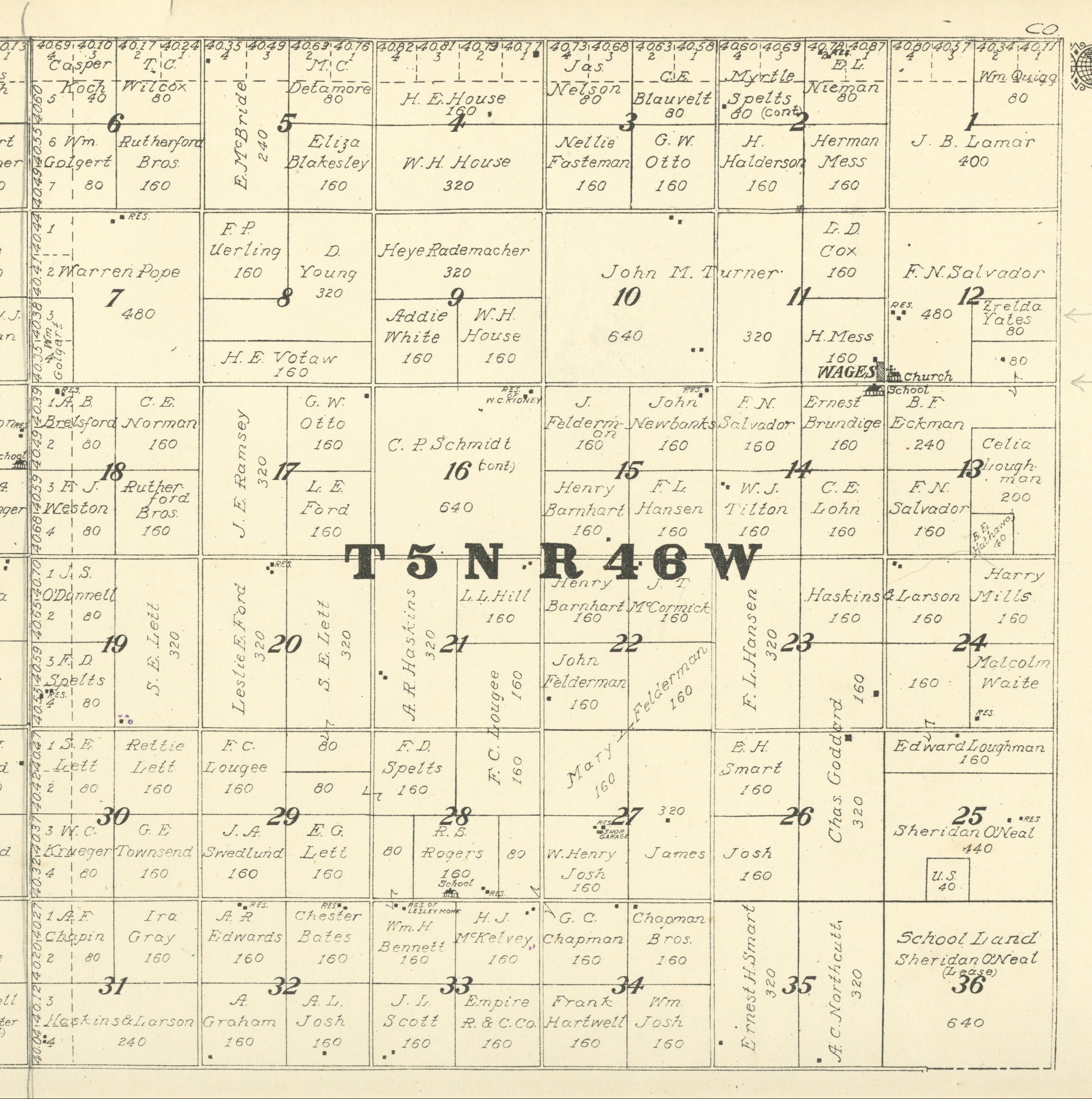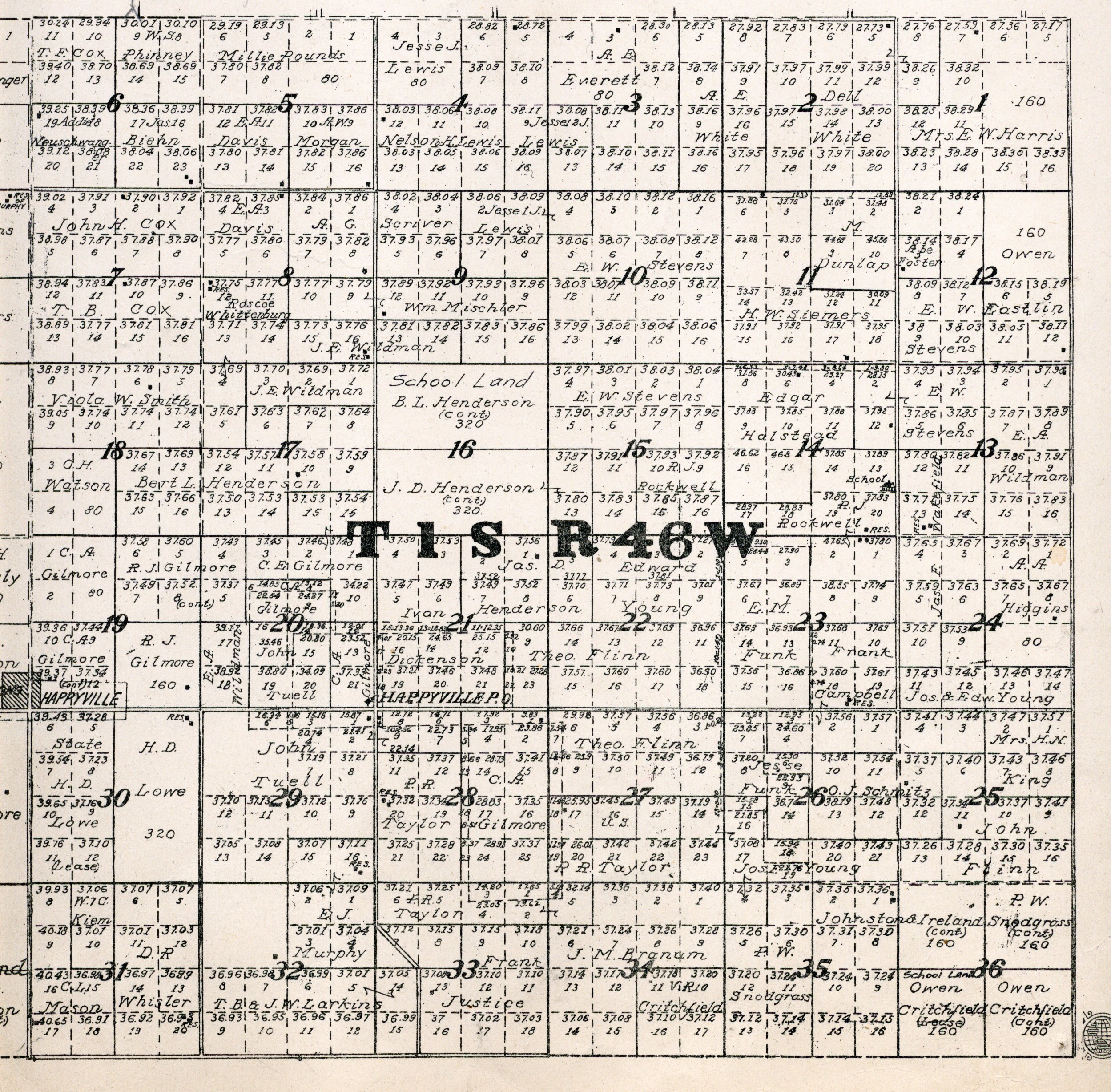 Yuma County Colorado 1922The attached files are 300 dpi scans of pages from the Standard Atlas of Yuma County Colorado published by George A. Ogle & Company, Chicago, 1922. The 20 x 18 inch title page was scanned in four sections and pieced back together. As is evident from Title.jpg there was a bit of light leak around the edges of the scan. The town and village plats were drawn together on four atlas pages and were scanned individually. The Eckley, Wray and Yuma maps were to large for my scanner and were scanned in sections and pieced back together. The 70 township ownership map plates were originally drawn six or seven townships to an atlas double-page. The individual townships were almost letter size and were scanned individually and not pieced back to full page size. I scanned the ownership maps over a period of two years from two different atlases with two different scanners. You will notice that while the majority are color scans, some are grayscale and a few are black and white. The Standard Atlas land ownership information dates from mid to late 1920 NOT 1922. I am in the process of putting together an index of names mentioned on each of the township maps. The atlas did not have a legend page. I have one I put together on the Yuma County, Colorado, COGenWeb pages. The 1922 Colorado map from the Standard Atlas was scanned two years ago and the individual county maps uploaded to the Digital Map library. This copy of the 1922 Standard Atlas was owned by my great grandfather, W.B. Coston. He added comments that I removed to several of the maps. You will note some stray lines on the maps that I did not remove. Other sections of the Atlas were a Patrons and Business Reference Directory, Business Advertisements and donated "Illustrations." All have been scanned or transcribed and uploaded to the Yuma County COGenWeb pages.