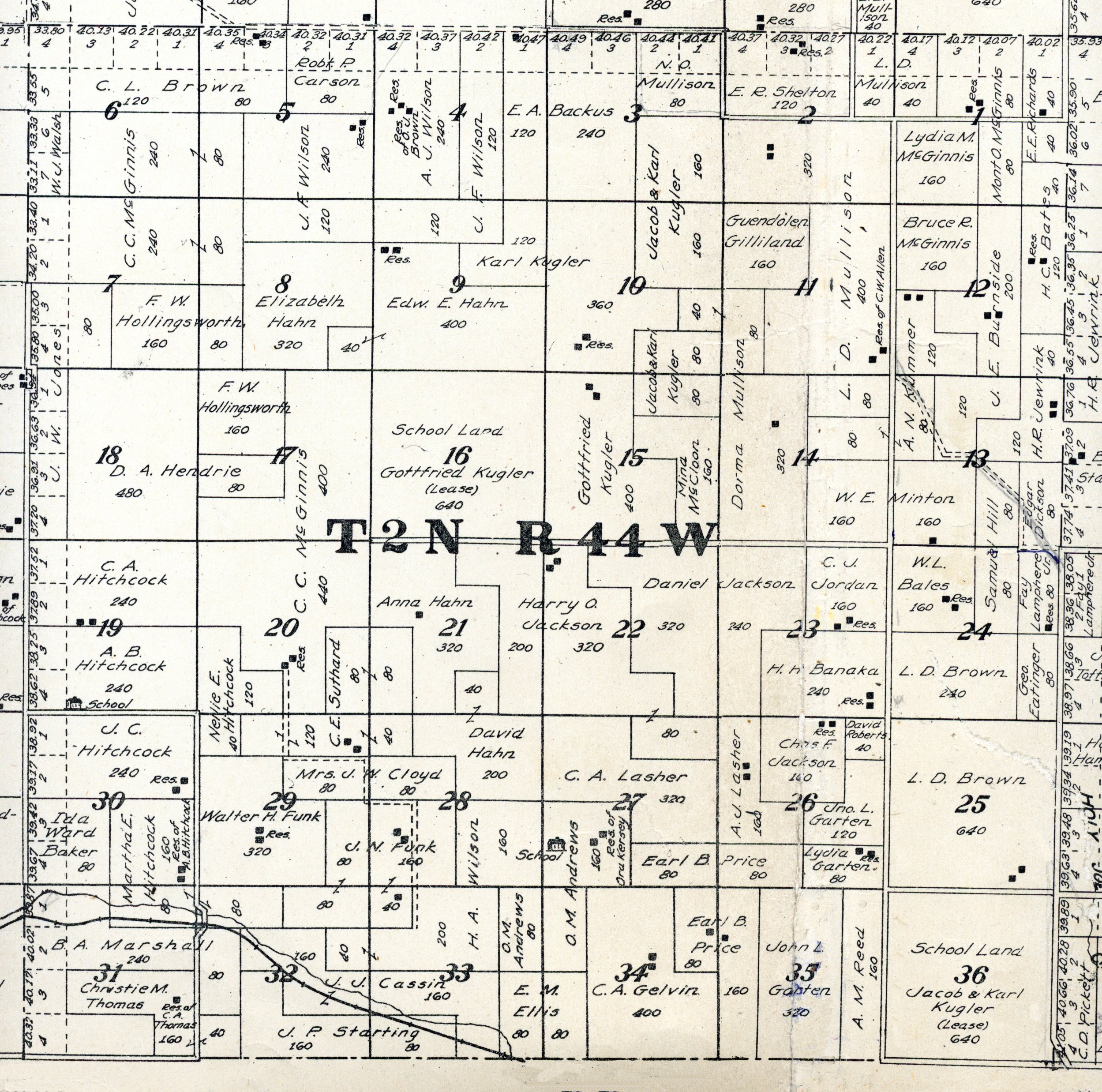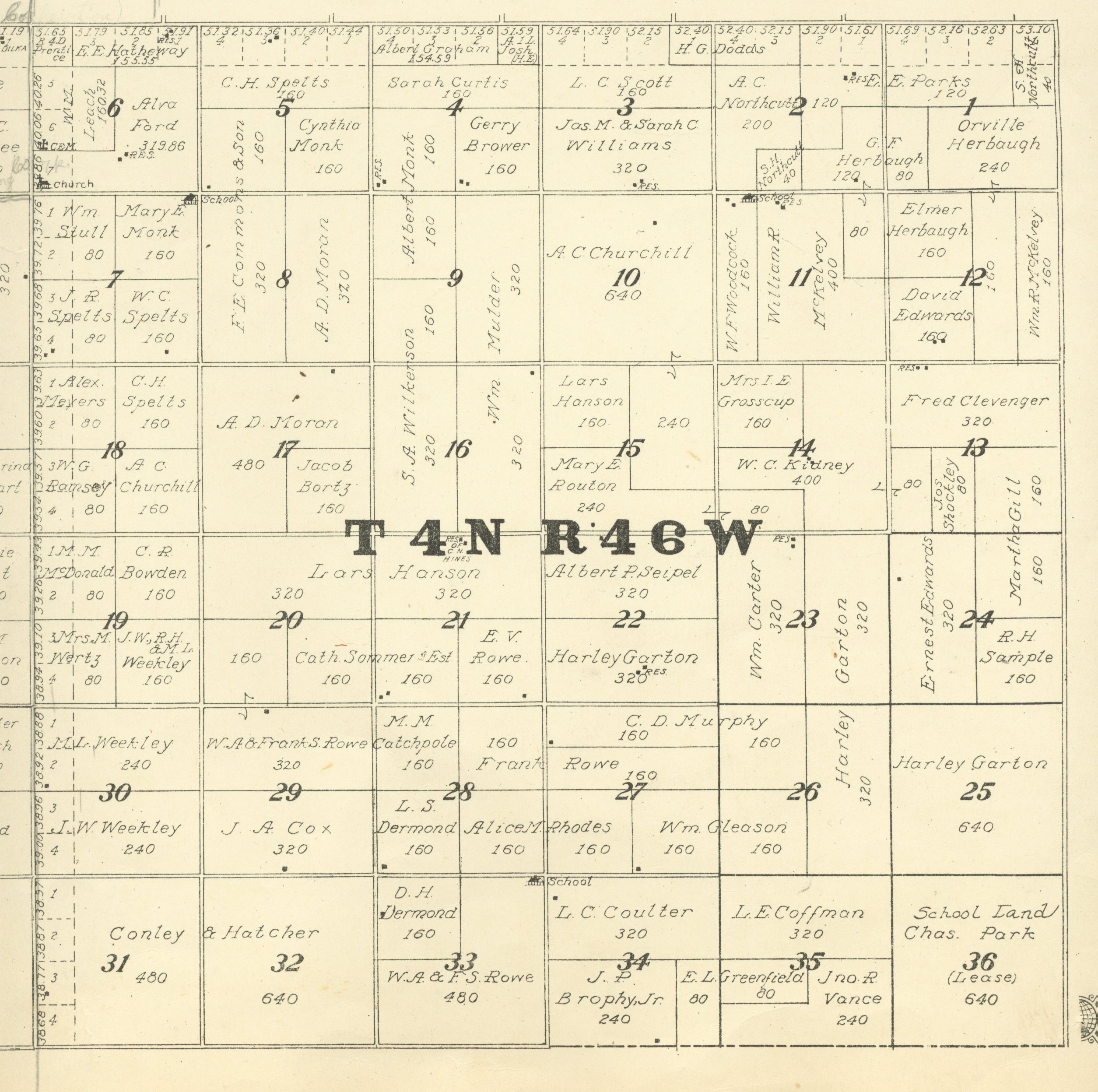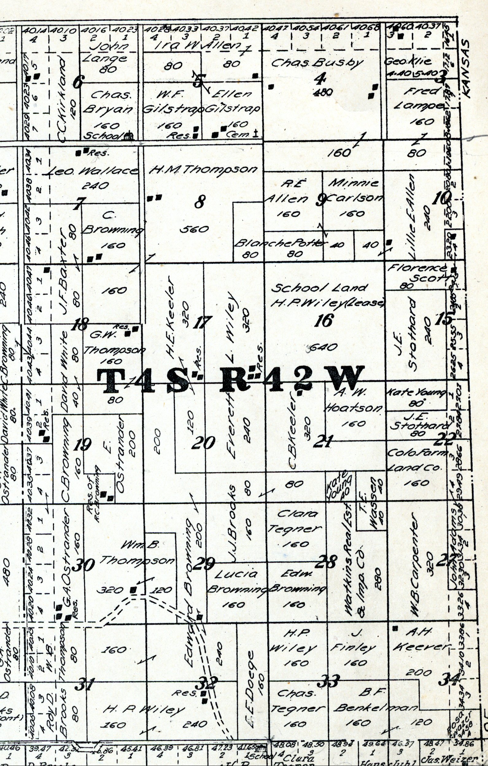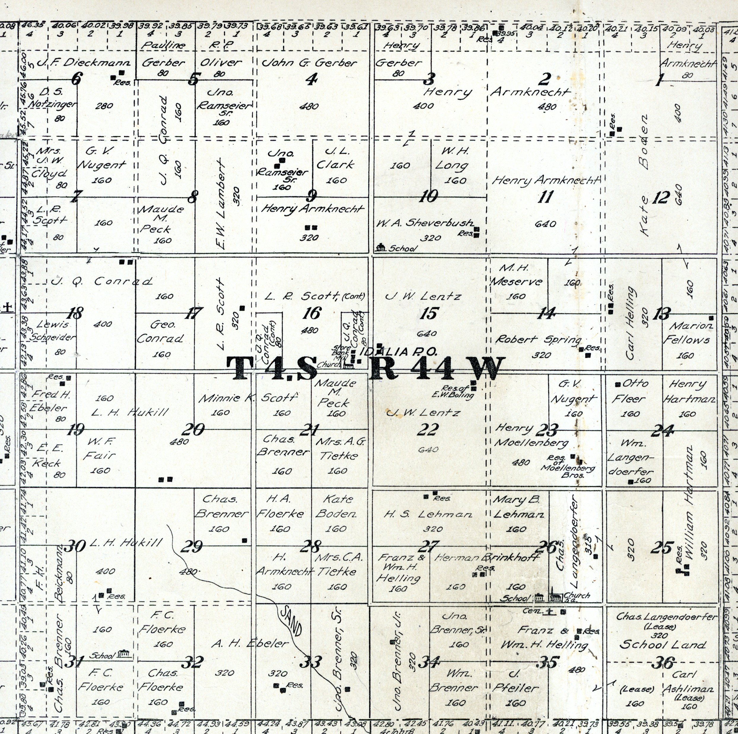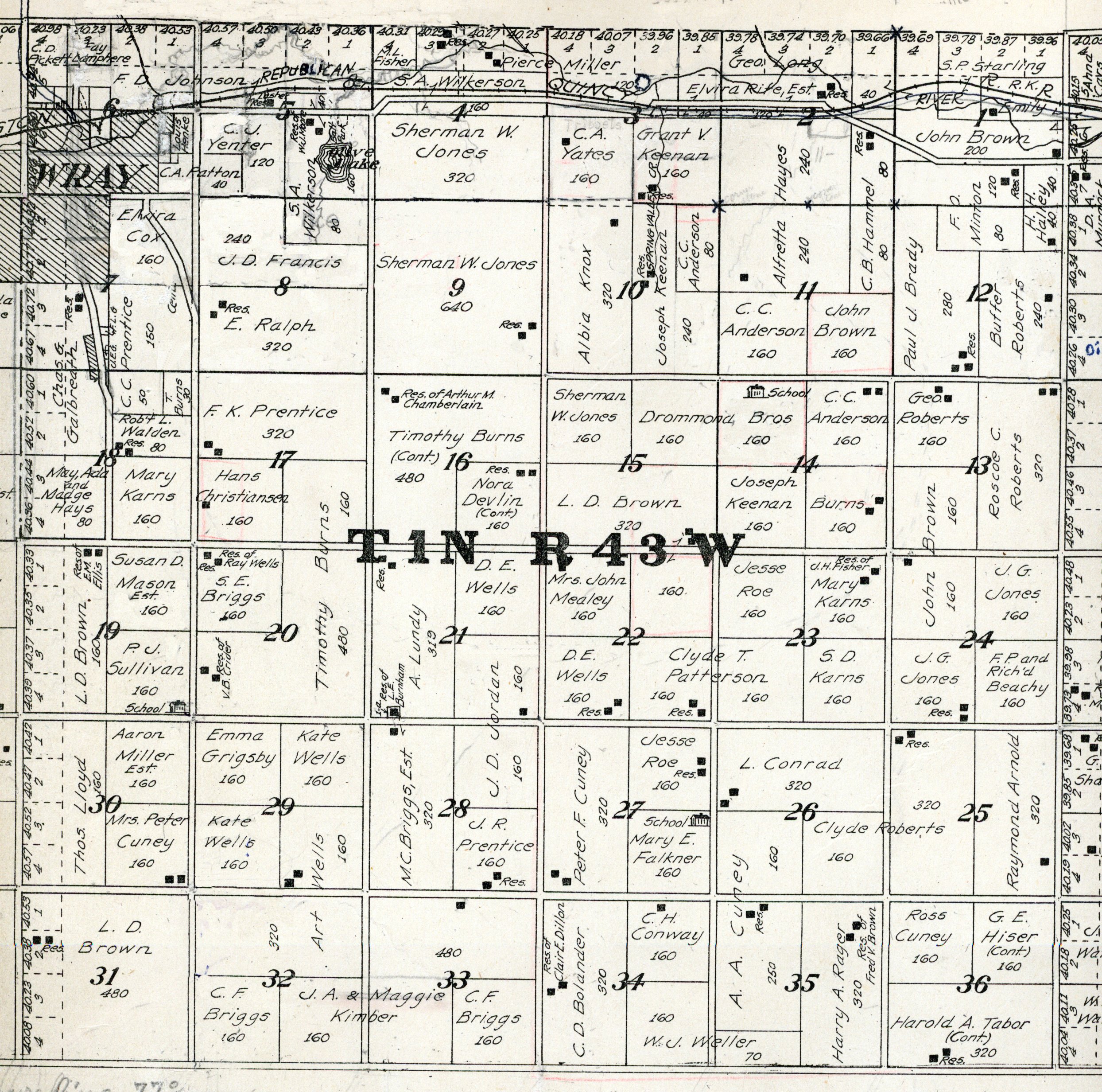 Yuma County Colorado 1922The attached files are 300 dpi scans of pages from the Standard Atlas of Yuma County Colorado published by George A. Ogle & Company, Chicago, 1922. The 20 x 18 inch title page was scanned in four sections and pieced back together. As is evident from Title.jpg there was a bit of light leak around the edges of the scan. The town and village plats were drawn together on four atlas pages and were scanned individually. The Eckley, Wray and Yuma maps were to large for my scanner and were scanned in sections and pieced back together. The 70 township ownership map plates were originally drawn six or seven townships to an atlas double-page. The individual townships were almost letter size and were scanned individually and not pieced back to full page size. I scanned the ownership maps over a period of two years from two different atlases with two different scanners. You will notice that while the majority are color scans, some are grayscale and a few are black and white. The Standard Atlas land ownership information dates from mid to late 1920 NOT 1922. I am in the process of putting together an index of names mentioned on each of the township maps. The atlas did not have a legend page. I have one I put together on the Yuma County, Colorado, COGenWeb pages. The 1922 Colorado map from the Standard Atlas was scanned two years ago and the individual county maps uploaded to the Digital Map library. This copy of the 1922 Standard Atlas was owned by my great grandfather, W.B. Coston. He added comments that I removed to several of the maps. You will note some stray lines on the maps that I did not remove. Other sections of the Atlas were a Patrons and Business Reference Directory, Business Advertisements and donated "Illustrations." All have been scanned or transcribed and uploaded to the Yuma County COGenWeb pages.