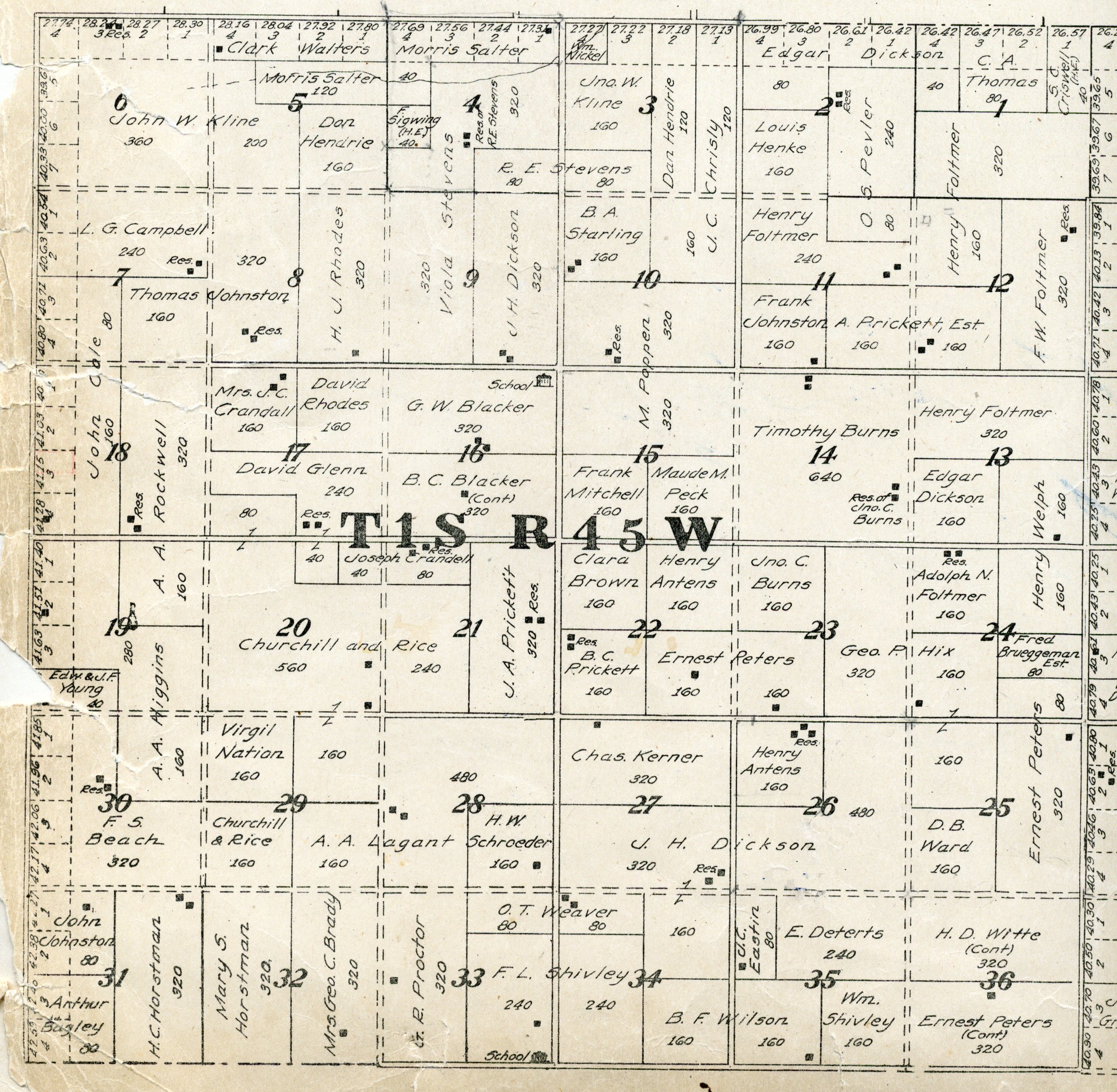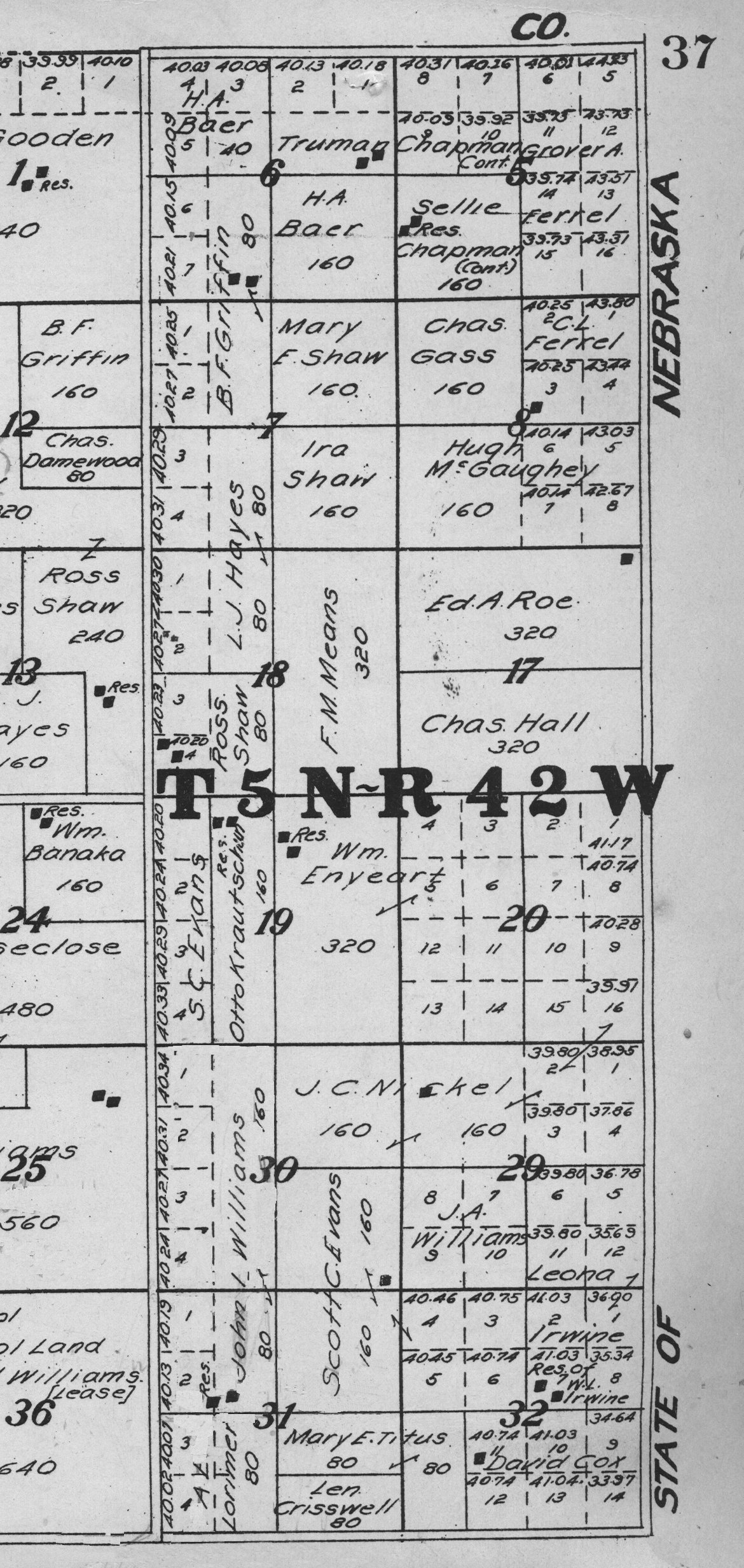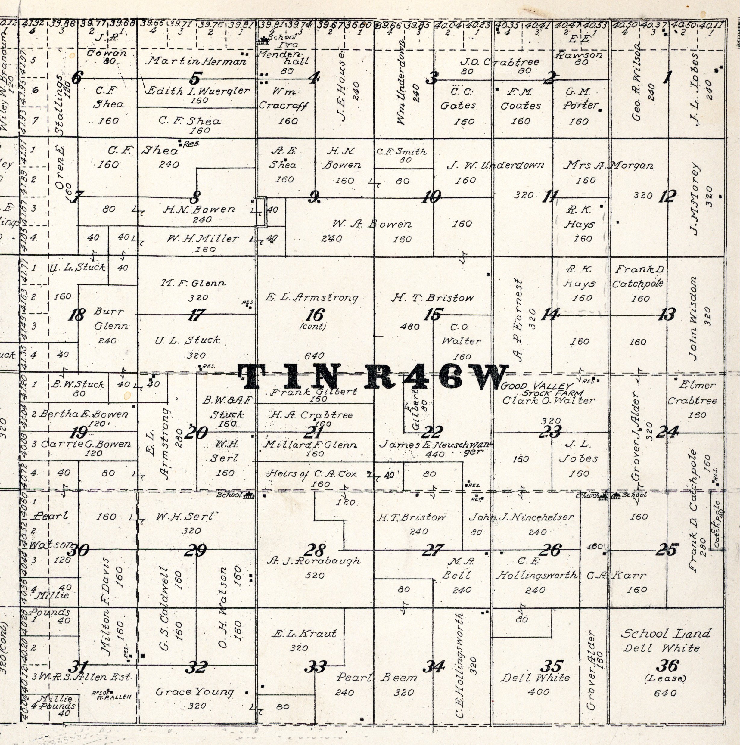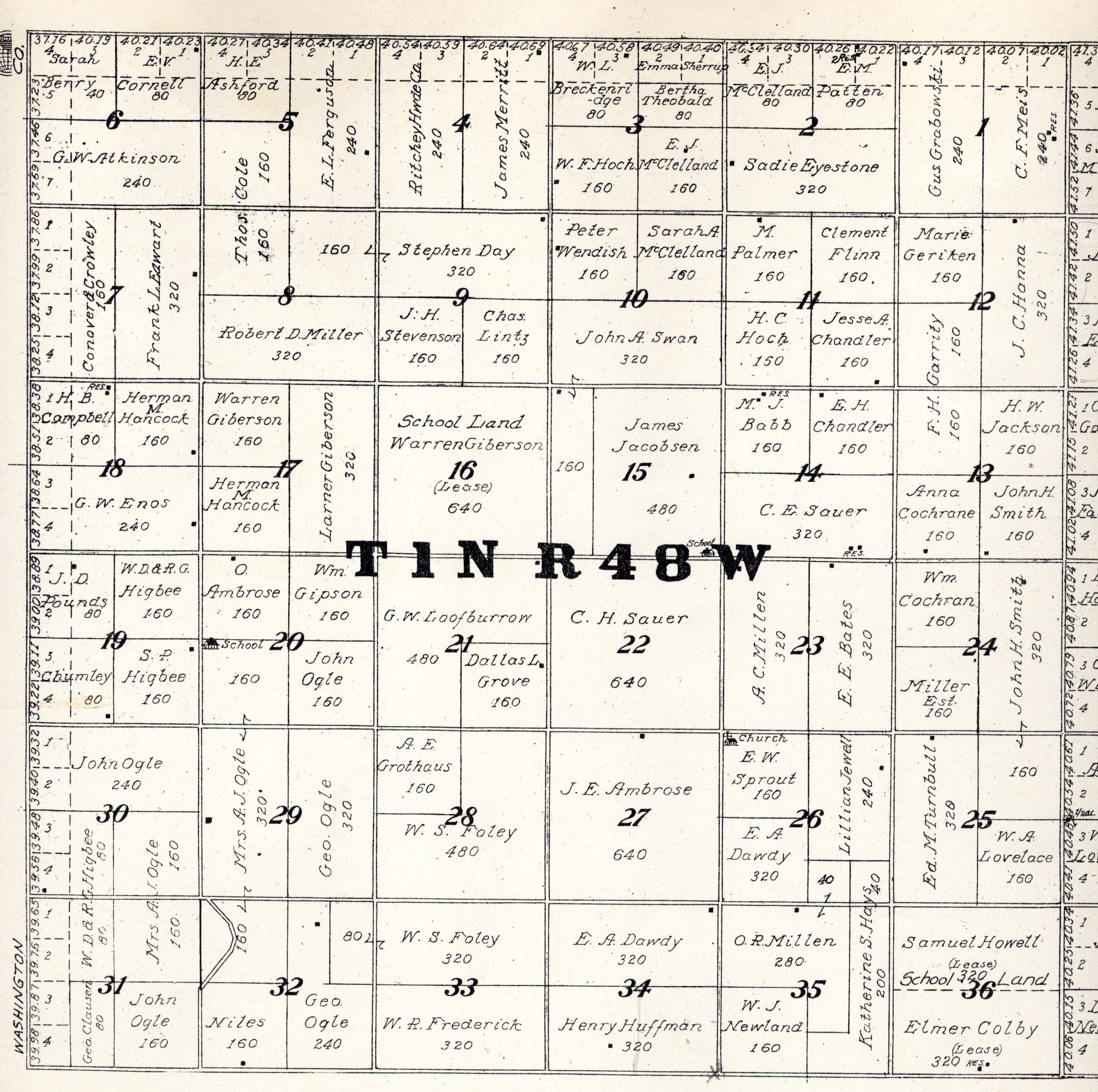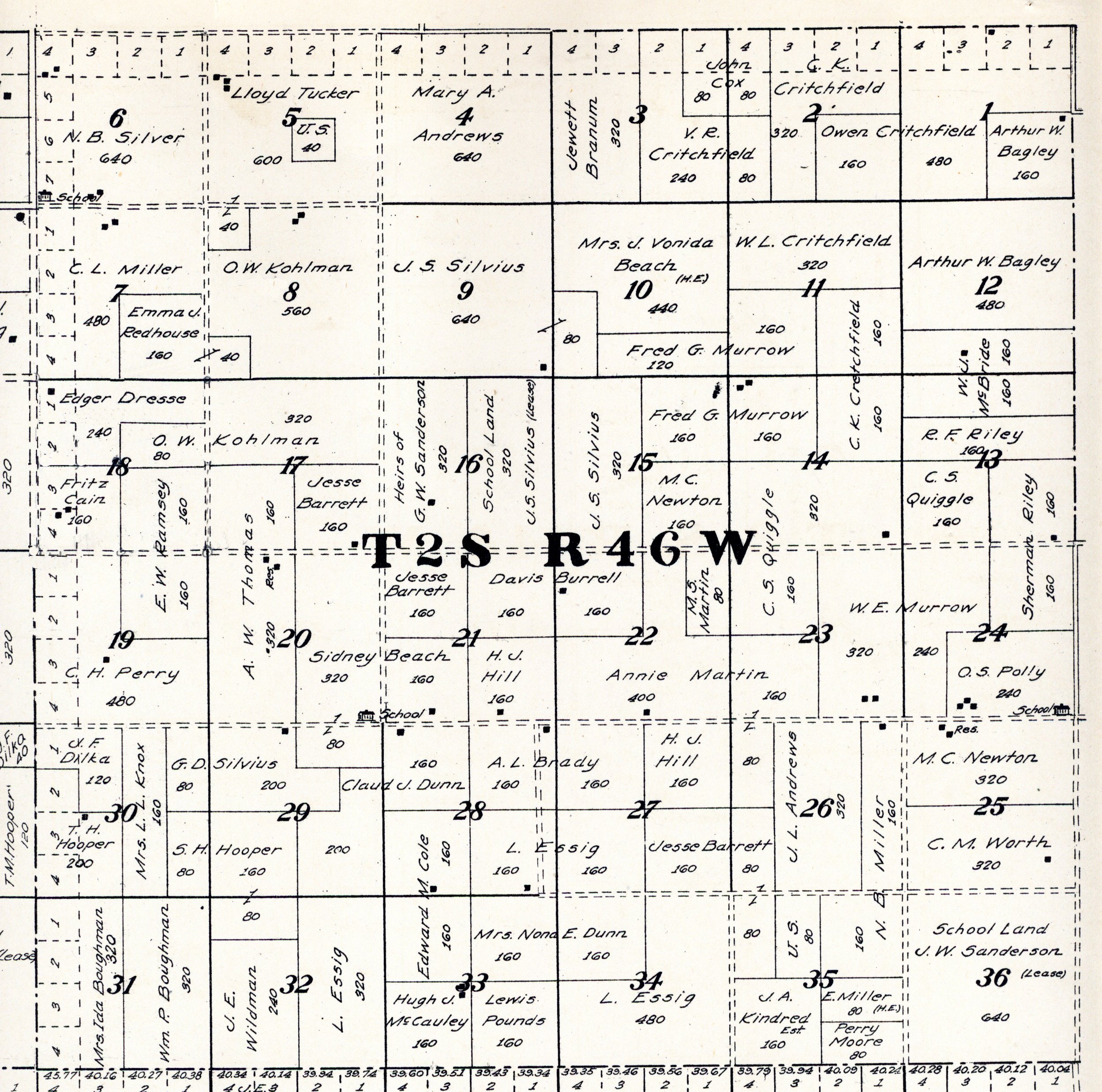 Yuma County Colorado 1922The attached files are 300 dpi scans of pages from the Standard Atlas of Yuma County Colorado published by George A. Ogle & Company, Chicago, 1922. The 20 x 18 inch title page was scanned in four sections and pieced back together. As is evident from Title.jpg there was a bit of light leak around the edges of the scan. The town and village plats were drawn together on four atlas pages and were scanned individually. The Eckley, Wray and Yuma maps were to large for my scanner and were scanned in sections and pieced back together. The 70 township ownership map plates were originally drawn six or seven townships to an atlas double-page. The individual townships were almost letter size and were scanned individually and not pieced back to full page size. I scanned the ownership maps over a period of two years from two different atlases with two different scanners. You will notice that while the majority are color scans, some are grayscale and a few are black and white. The Standard Atlas land ownership information dates from mid to late 1920 NOT 1922. I am in the process of putting together an index of names mentioned on each of the township maps. The atlas did not have a legend page. I have one I put together on the Yuma County, Colorado, COGenWeb pages. The 1922 Colorado map from the Standard Atlas was scanned two years ago and the individual county maps uploaded to the Digital Map library. This copy of the 1922 Standard Atlas was owned by my great grandfather, W.B. Coston. He added comments that I removed to several of the maps. You will note some stray lines on the maps that I did not remove. Other sections of the Atlas were a Patrons and Business Reference Directory, Business Advertisements and donated "Illustrations." All have been scanned or transcribed and uploaded to the Yuma County COGenWeb pages.