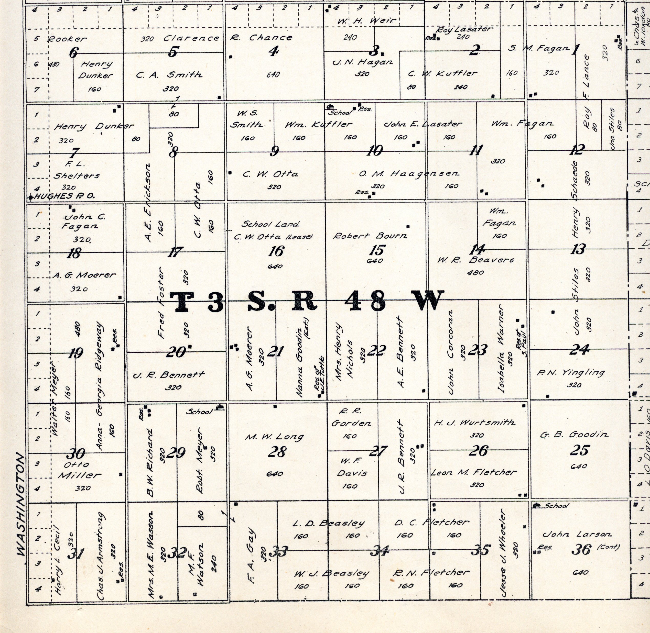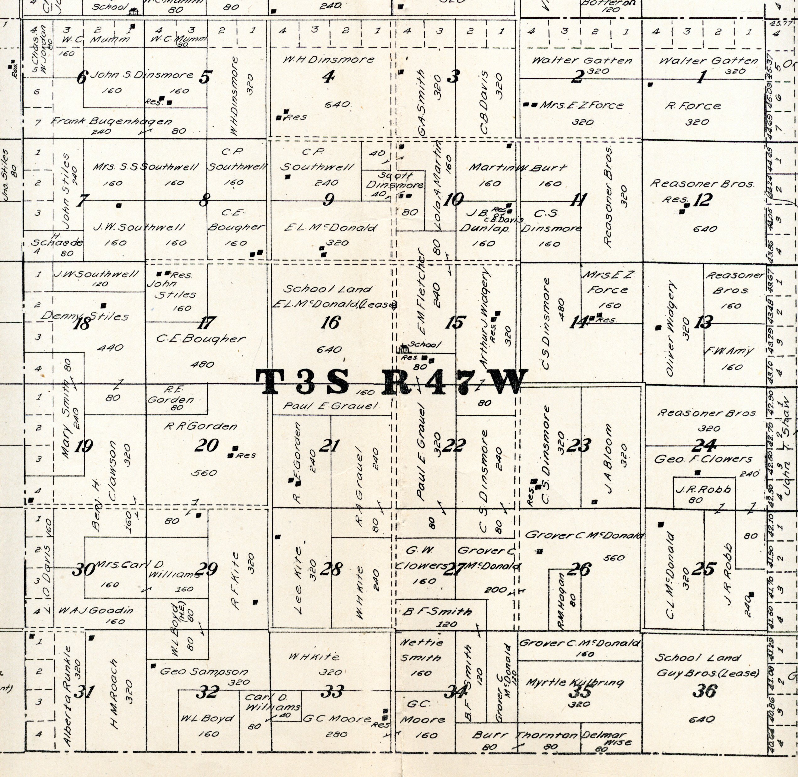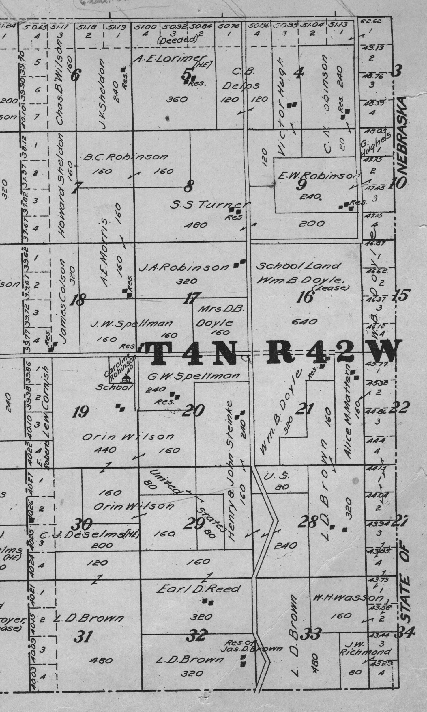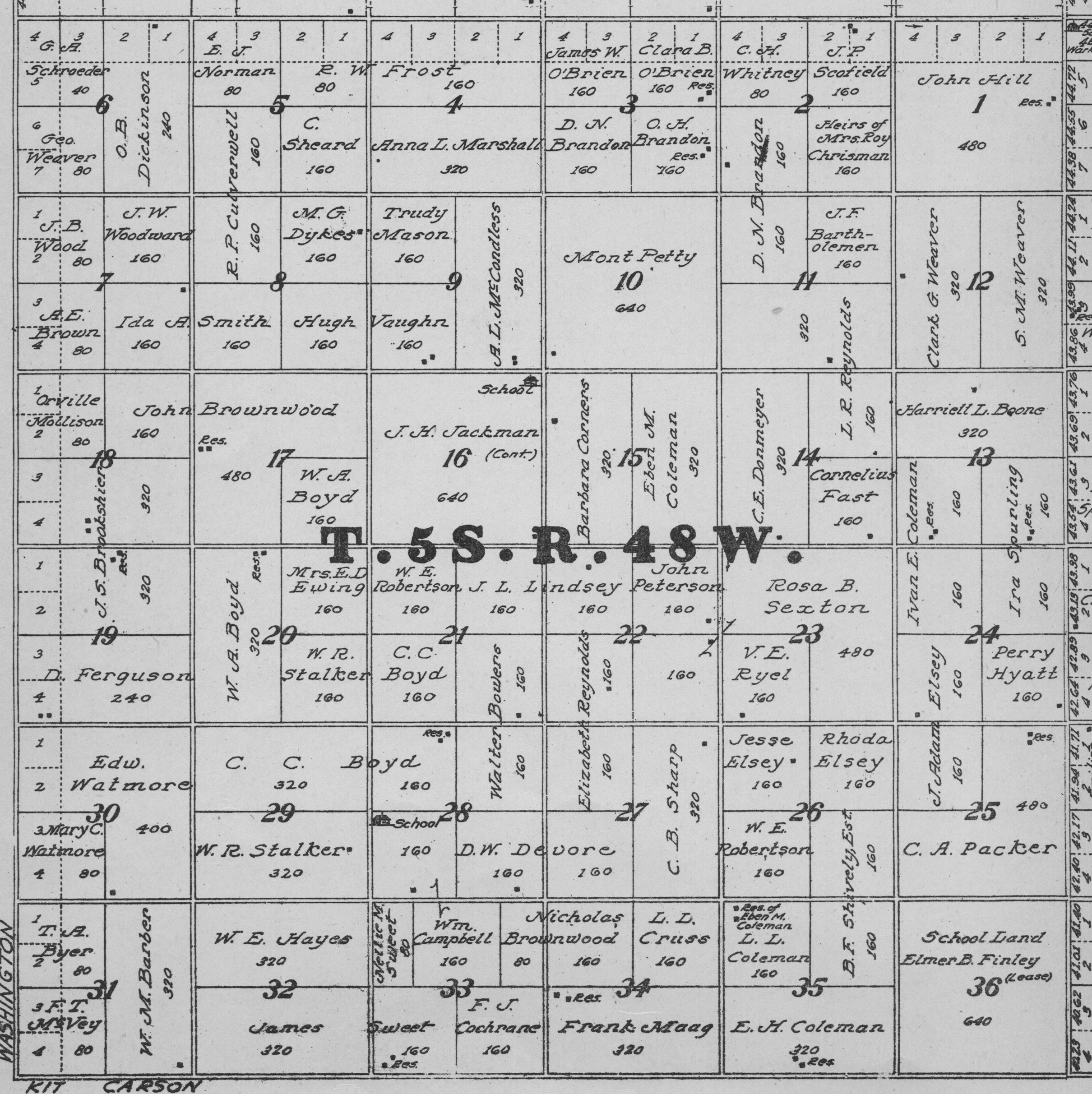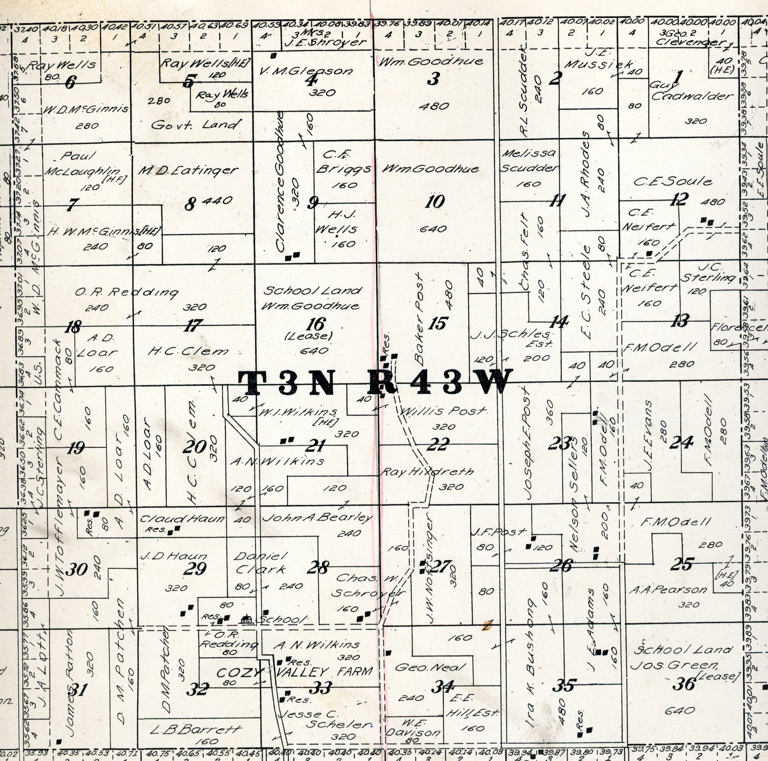 Yuma County Colorado 1922The attached files are 300 dpi scans of pages from the Standard Atlas of Yuma County Colorado published by George A. Ogle & Company, Chicago, 1922. The 20 x 18 inch title page was scanned in four sections and pieced back together. As is evident from Title.jpg there was a bit of light leak around the edges of the scan. The town and village plats were drawn together on four atlas pages and were scanned individually. The Eckley, Wray and Yuma maps were to large for my scanner and were scanned in sections and pieced back together. The 70 township ownership map plates were originally drawn six or seven townships to an atlas double-page. The individual townships were almost letter size and were scanned individually and not pieced back to full page size. I scanned the ownership maps over a period of two years from two different atlases with two different scanners. You will notice that while the majority are color scans, some are grayscale and a few are black and white. The Standard Atlas land ownership information dates from mid to late 1920 NOT 1922. I am in the process of putting together an index of names mentioned on each of the township maps. The atlas did not have a legend page. I have one I put together on the Yuma County, Colorado, COGenWeb pages. The 1922 Colorado map from the Standard Atlas was scanned two years ago and the individual county maps uploaded to the Digital Map library. This copy of the 1922 Standard Atlas was owned by my great grandfather, W.B. Coston. He added comments that I removed to several of the maps. You will note some stray lines on the maps that I did not remove. Other sections of the Atlas were a Patrons and Business Reference Directory, Business Advertisements and donated "Illustrations." All have been scanned or transcribed and uploaded to the Yuma County COGenWeb pages.