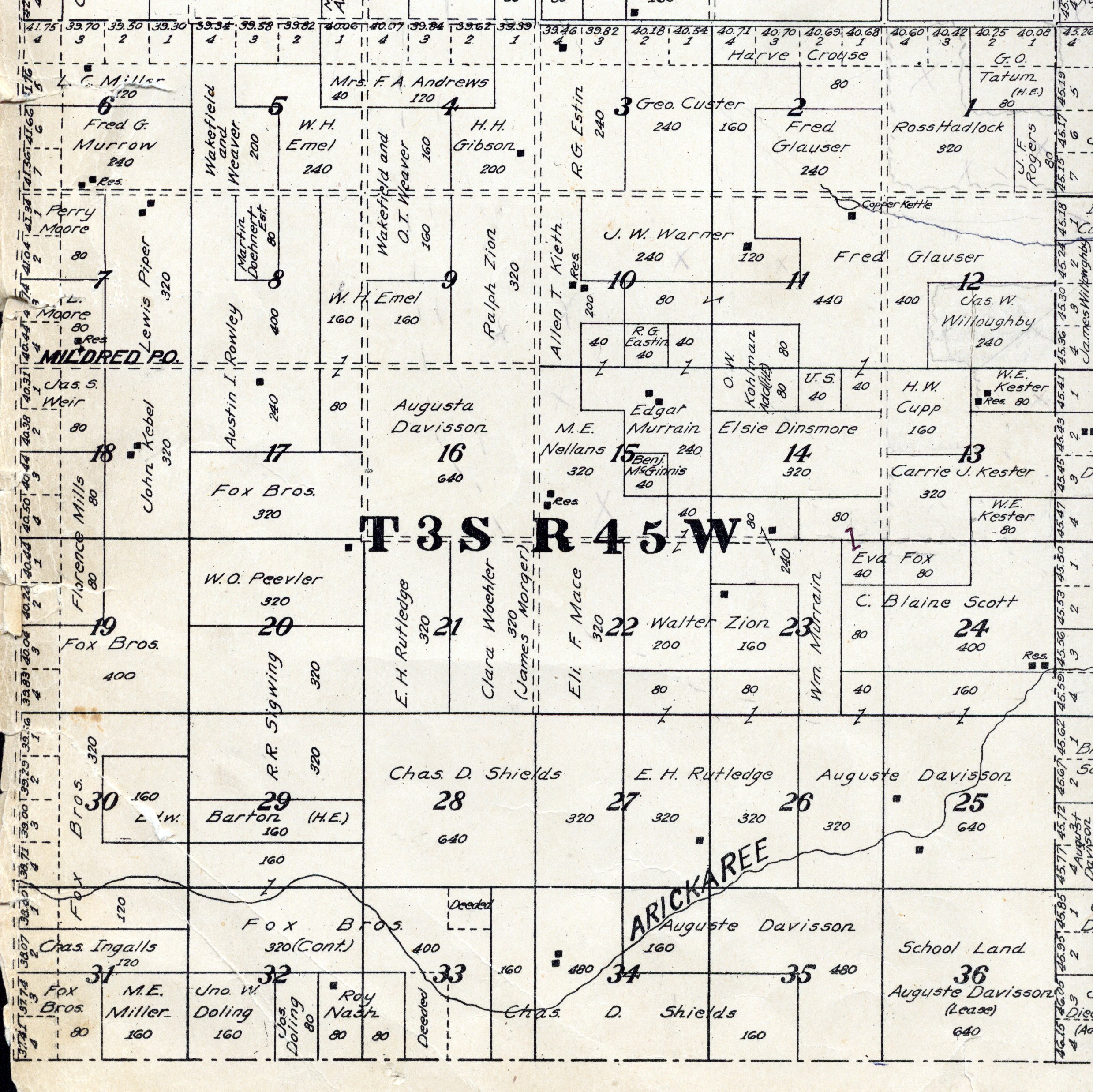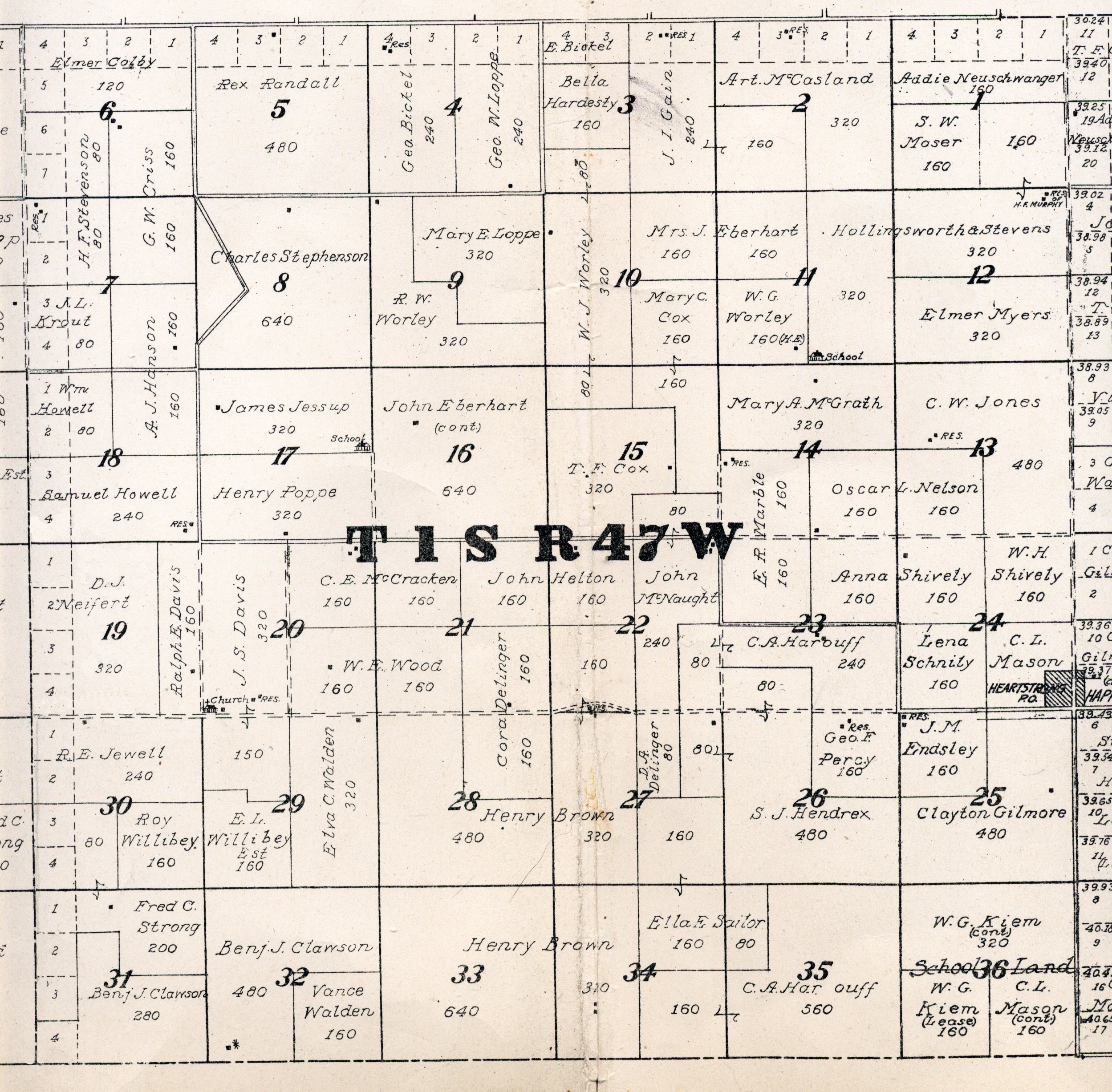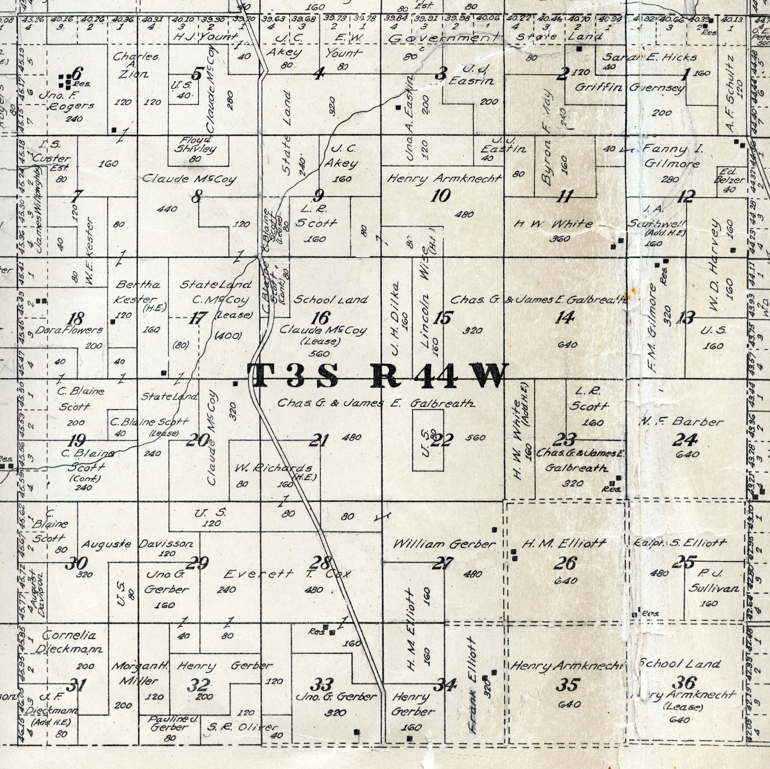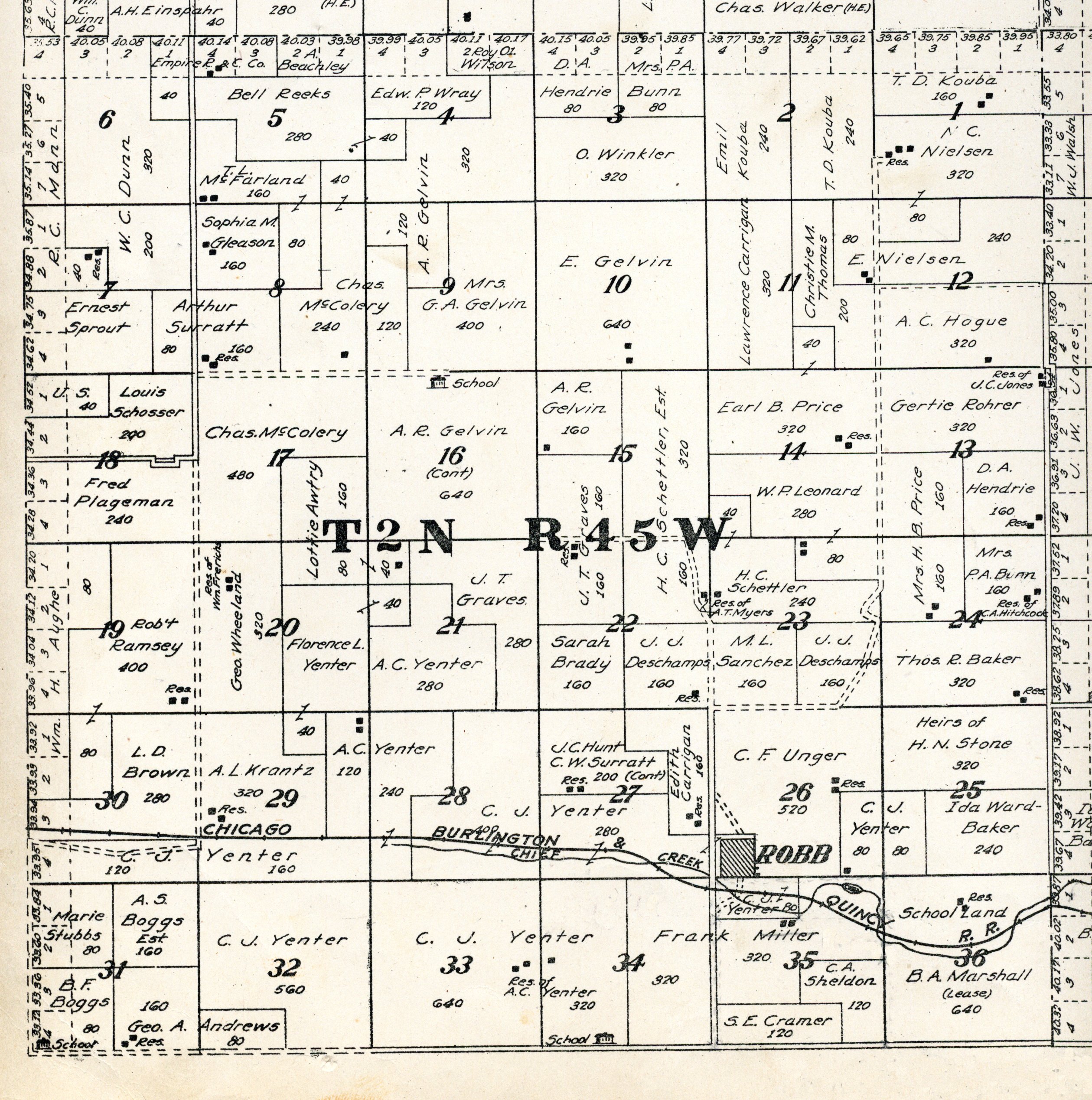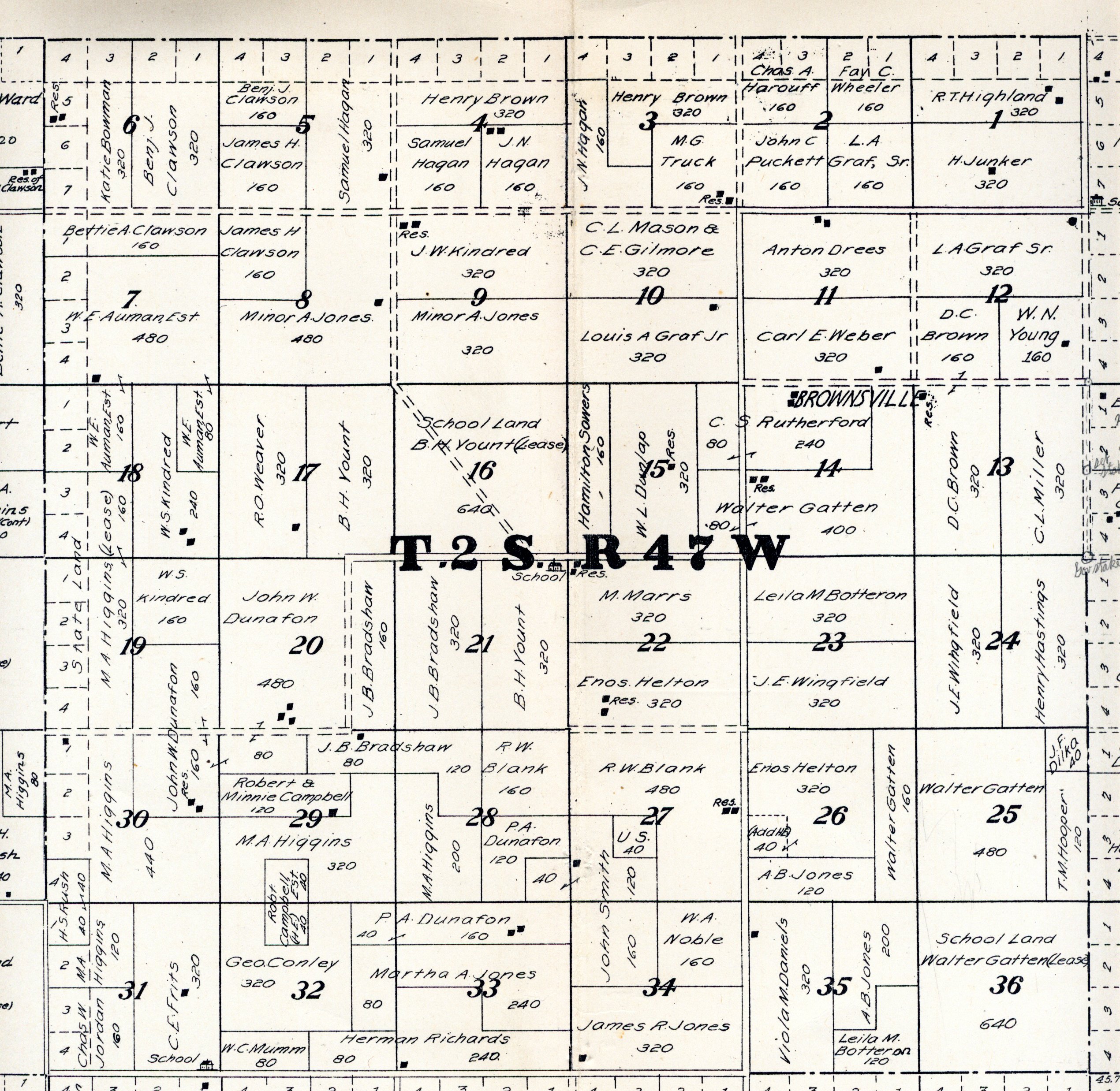 Yuma County Colorado 1922The attached files are 300 dpi scans of pages from the Standard Atlas of Yuma County Colorado published by George A. Ogle & Company, Chicago, 1922. The 20 x 18 inch title page was scanned in four sections and pieced back together. As is evident from Title.jpg there was a bit of light leak around the edges of the scan. The town and village plats were drawn together on four atlas pages and were scanned individually. The Eckley, Wray and Yuma maps were to large for my scanner and were scanned in sections and pieced back together. The 70 township ownership map plates were originally drawn six or seven townships to an atlas double-page. The individual townships were almost letter size and were scanned individually and not pieced back to full page size. I scanned the ownership maps over a period of two years from two different atlases with two different scanners. You will notice that while the majority are color scans, some are grayscale and a few are black and white. The Standard Atlas land ownership information dates from mid to late 1920 NOT 1922. I am in the process of putting together an index of names mentioned on each of the township maps. The atlas did not have a legend page. I have one I put together on the Yuma County, Colorado, COGenWeb pages. The 1922 Colorado map from the Standard Atlas was scanned two years ago and the individual county maps uploaded to the Digital Map library. This copy of the 1922 Standard Atlas was owned by my great grandfather, W.B. Coston. He added comments that I removed to several of the maps. You will note some stray lines on the maps that I did not remove. Other sections of the Atlas were a Patrons and Business Reference Directory, Business Advertisements and donated "Illustrations." All have been scanned or transcribed and uploaded to the Yuma County COGenWeb pages.
