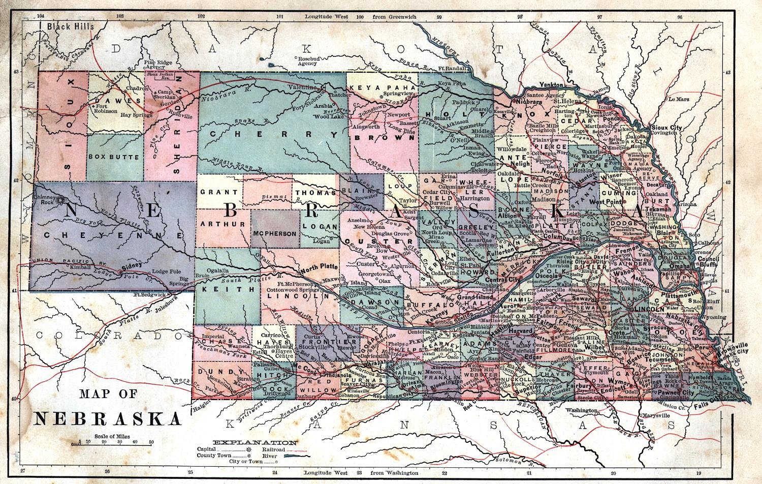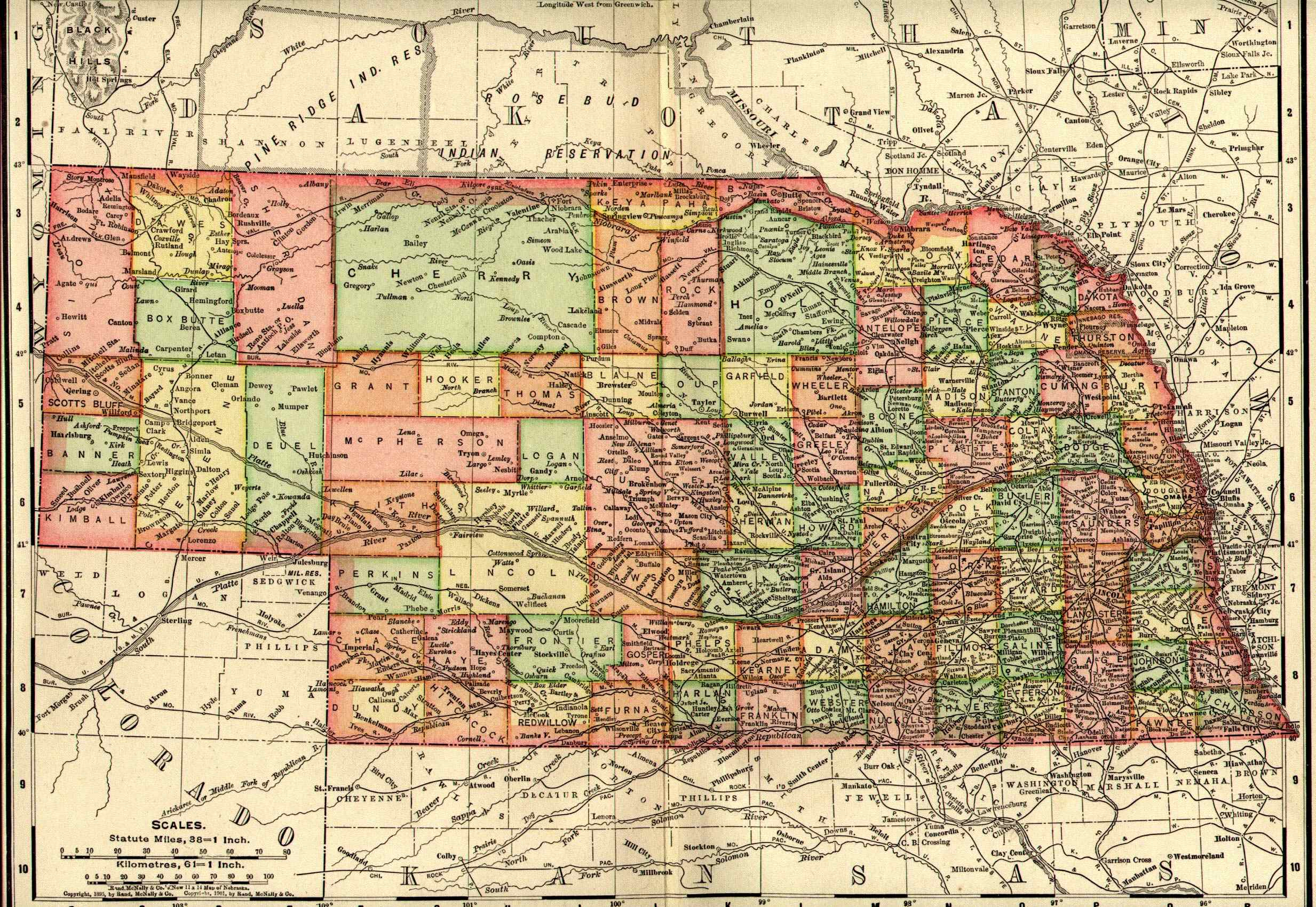 If you would like to make contributions of maps to this page, please e-mail Rebecca Maloney. Your contributions are both needed and appreciated! Nebraska State MapsNebraska County Boundaries, 1990 U.S. Dept. of Commerce, Bureau of the Census (94kb) State of Nebraska, The New International Encyclopedia, by Dodd, Mead and Company, New York, NY., 1908. Scanned by Danny Brown. (955kb) Map of Nebraska, Copyright 1901, Rand McNally & Co. Scanned by Danny Brown. (738kb)