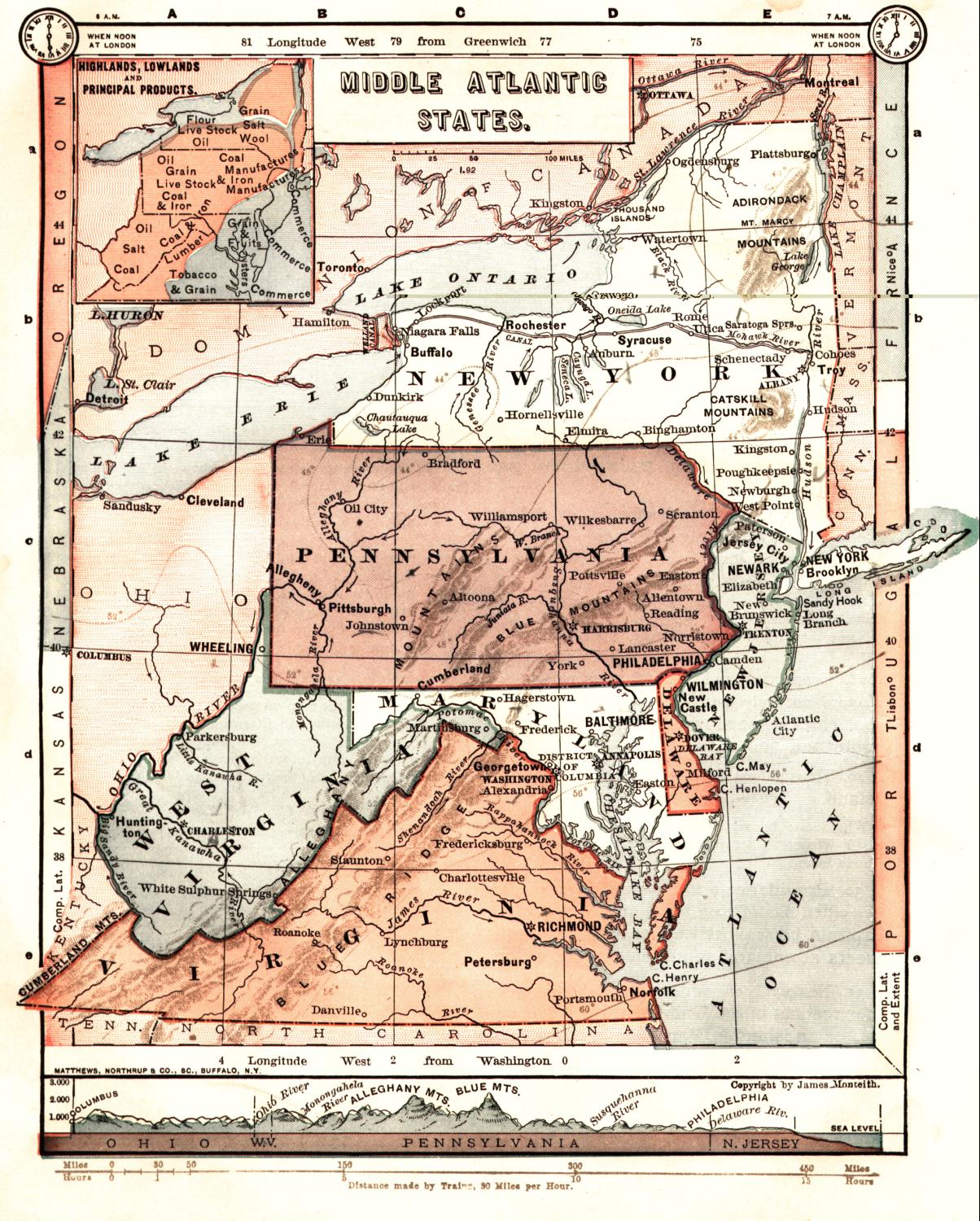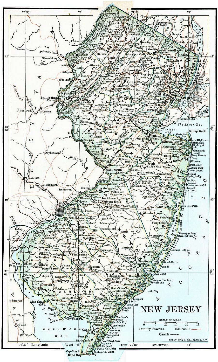 Middle Atlantic States, Natural Elementary Geography (1897), Redway and Hinman, American Book Company. Includes New York, Pennsylvania, Maryland, Virginia, and New Jersey (464kb) Chicago and Canada Southern Railway (partial), prepared by G.W. & C.W. Colton & Co., 172 William St. New York, c. 1872, Source: Geography & Map Division, Library of Congress (178k) New Jersey County Boundaries, 1990 U.S. Dept. of Commerce, Bureau of the Census (64kb)