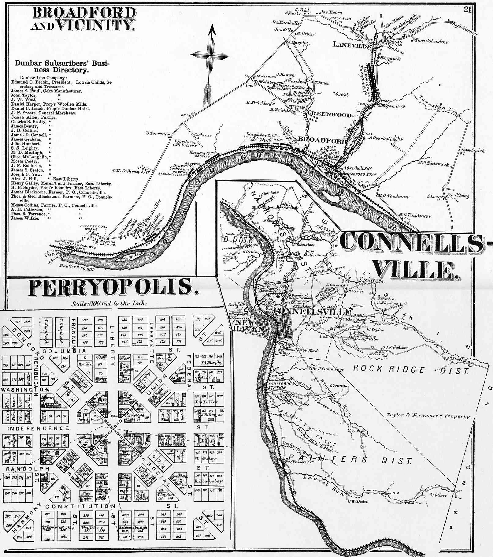 Township and borough maps of Fayette County Pennsylvania from the 1872 Atlas of the County of Fayette and the State of Pennsylvania, by G.M. Hopkins & Co., Philadelphia.