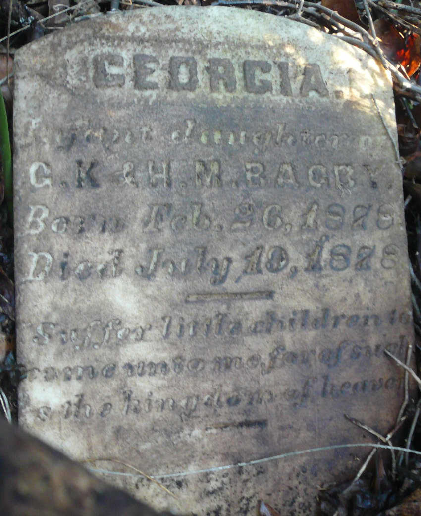 Georgia Bagby, Feb. 26, 1878 - July 19, 1878 - Infant dau. of G.K. & H.M. Bagby
