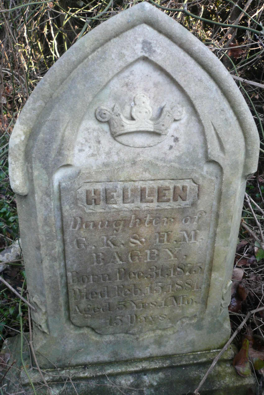 Hellen Bagby, Dec. 31, 1875 - Feb. 15, 1881 - Dau. of G.K. & H.M. Bagby