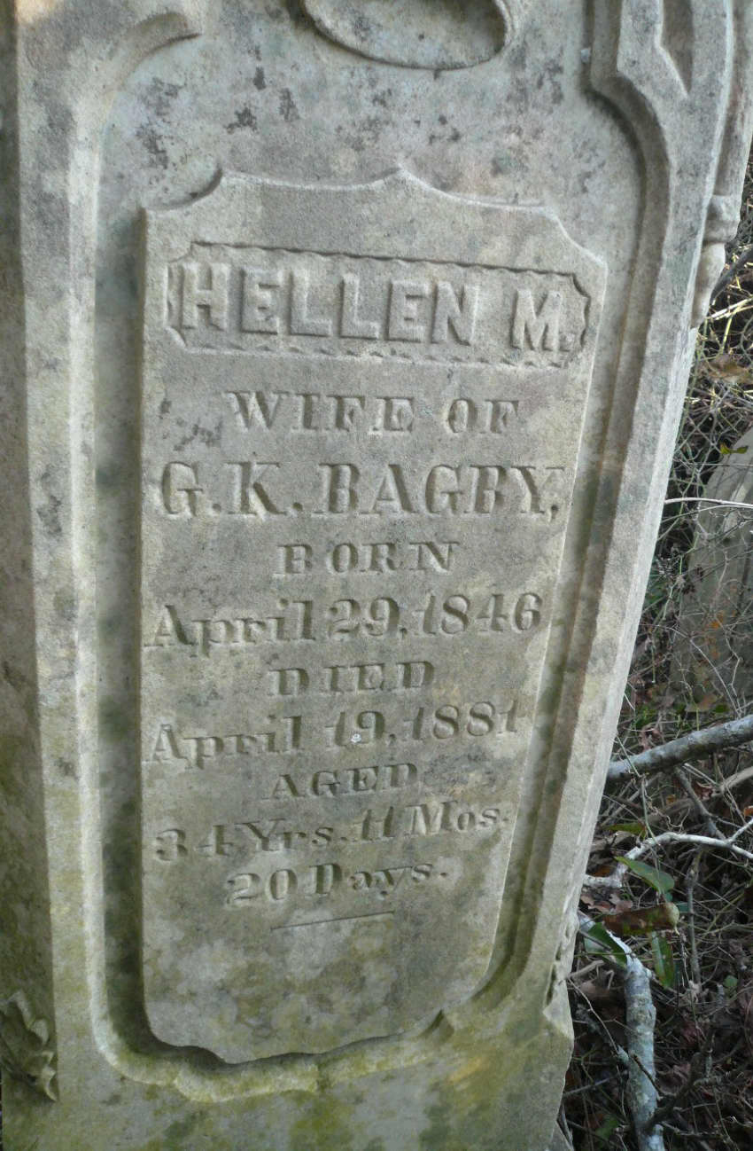 Hellen M. Bagby, Apr. 29, 1846 - Apr. 19, 1881 - 34 Yrs 11 Mos 20 Days