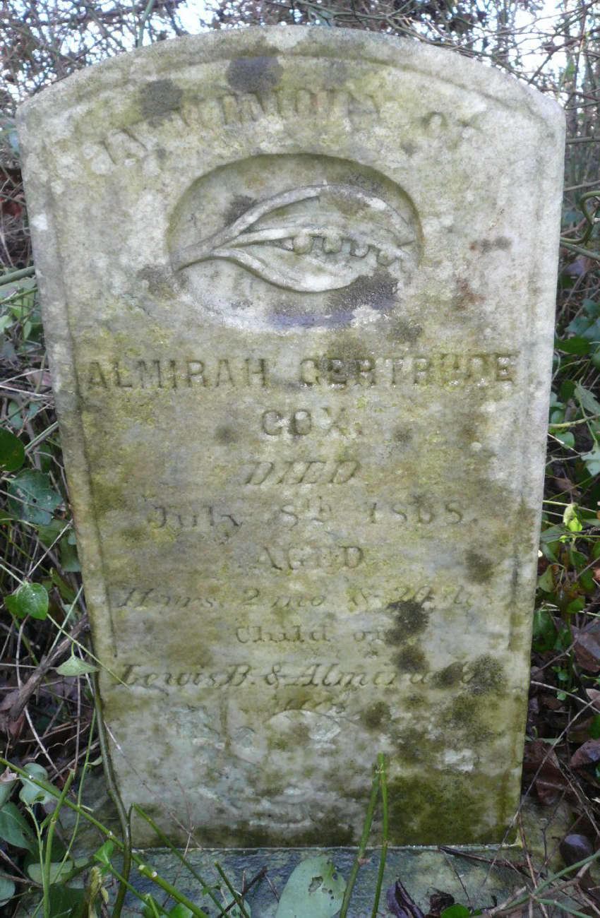 Almirah Gertrude Cox, (Apr. 29, 1857) - July 8, 1868 Aged 11 yrs 2 mos 20 days