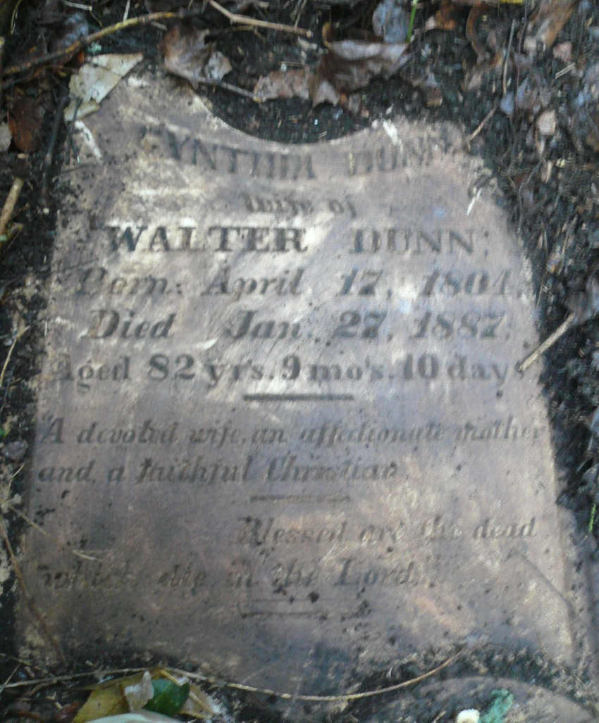 Cynthia Dunn, Apr. 17, 1804 - Jan. 27, 1887, Aged 82 years 9 mos 10 days